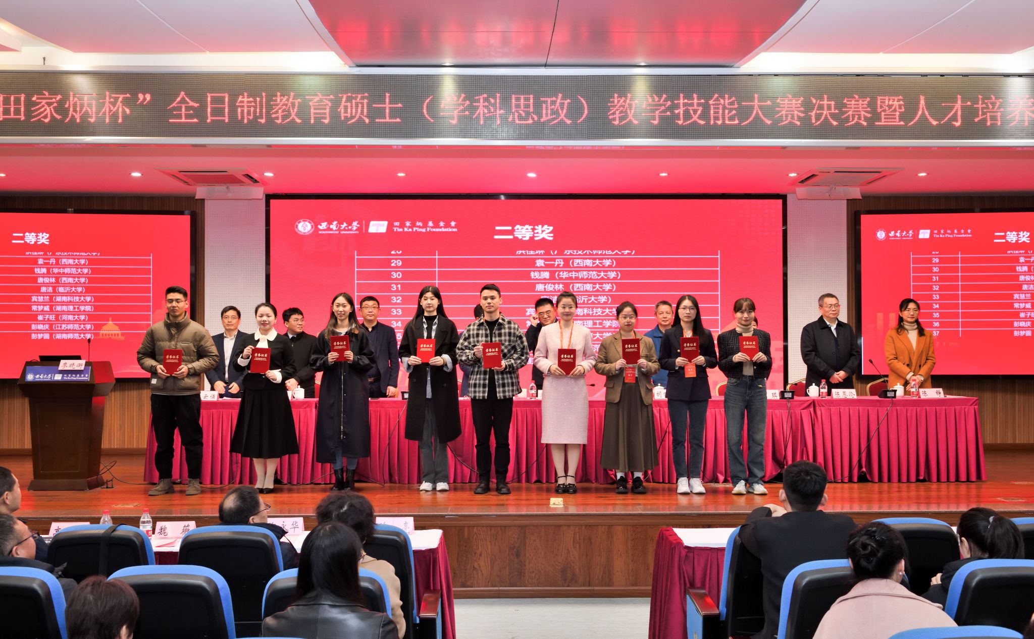 12月3日,由全国教指委主办,西南大学承办的2023年全国“田家炳杯”全日制教育硕士专业学位研究生学科教学(思政)专业教学技能大赛决赛圆满落幕。经过激烈的角逐,MILE米乐集团2022级学科教学(思政)研究生杨东升同学获得二等奖,指导老师何光辉获优秀指导教师奖。