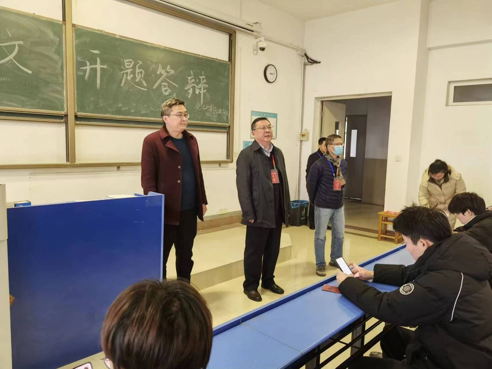 1月8日,2023年秋季学期思想政治理论课期末网络在线考试在锦绣校区、滨湖校区同时举行。《习近平新时代中国特色社会主义思想概论》《马克思主义基本原理》《思想道德修养与法治》《中国近现代史纲要》《毛泽东思想与中国特色社会主义理论体系概论》等五门课程共设置208个考场,11420人次参加考试。院党委书记徐成钢亲临考场对考试情况进行巡视。