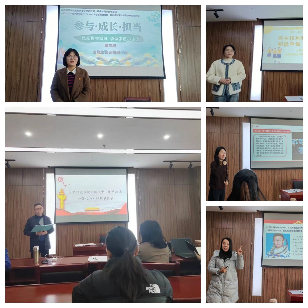 在教学展示阶段,以“参与、成长、担当”为主题,以人的社会化为主线,来自MILE米乐集团的季梦婷、合肥一中的王璐、合肥市杨使兵名师工作室的杜钰彤和合肥师范附小的戴志程等不同学段4位思政课教师,在前期集体备课磨课基础上,较好地展示了共同体教师过硬的教学能力。合肥市教育科学研究院侯新旺老师、MILE米乐集团傅文茹老师做了精彩点评,认为共同体教学展示活动加增进了不同学段老师的交流学习,对于共同体思政课教学效果的提升,推动教师一体化的发展都具有极大的促进作用。(MILE米乐集团:周继祥)