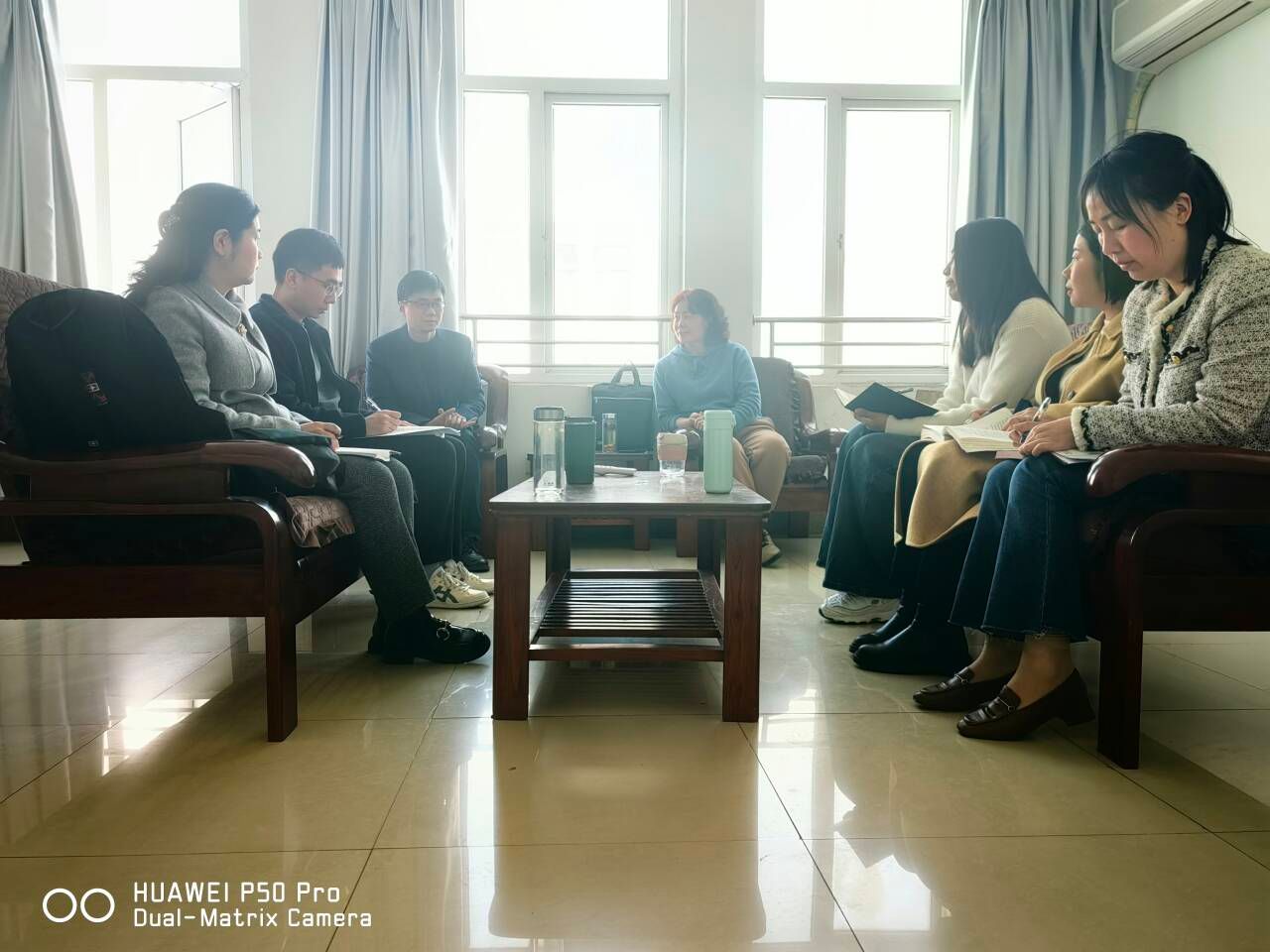 活动结束后,教研室老师在逸夫楼四楼教师休息室对此次教学展示进行了评议。大家一致认为,“多人同上一堂思政课”教学模式很好、很适用,是提高思政课教学质量,保障学生“到课率”“抬头率”的有效教学模式,教研室将不断探索这一教学模式在课堂上的应用。