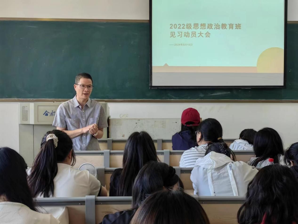 为进一步提升师范生教育教学实践能力,引导学生做好见习前的各项准备,5月15日下午,学院思想政治教育专业在锦绣校区博约楼103教室召开2022级思想政治教育专业教育见习动员会。院长何光辉、副院长方政、部分校内见习指导教师老师出席会议,2022级思想政治教育专业全体学生参加会议。