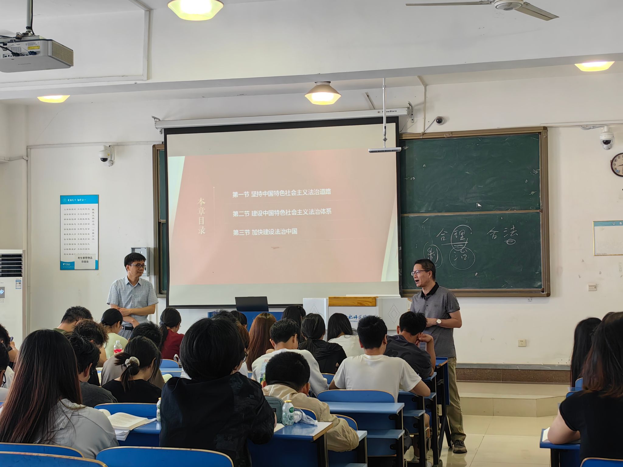 5月24日上午,在锦绣校区逸夫楼A404教室《习近平新时代中国特色社会主义思想概论》课堂上,MILE米乐集团开展了“多师同上”一堂思政课教学活动。张军占、谷向阳、何光辉三位教师先后同台,为学生深度解析“全面依法治国”专题内容。