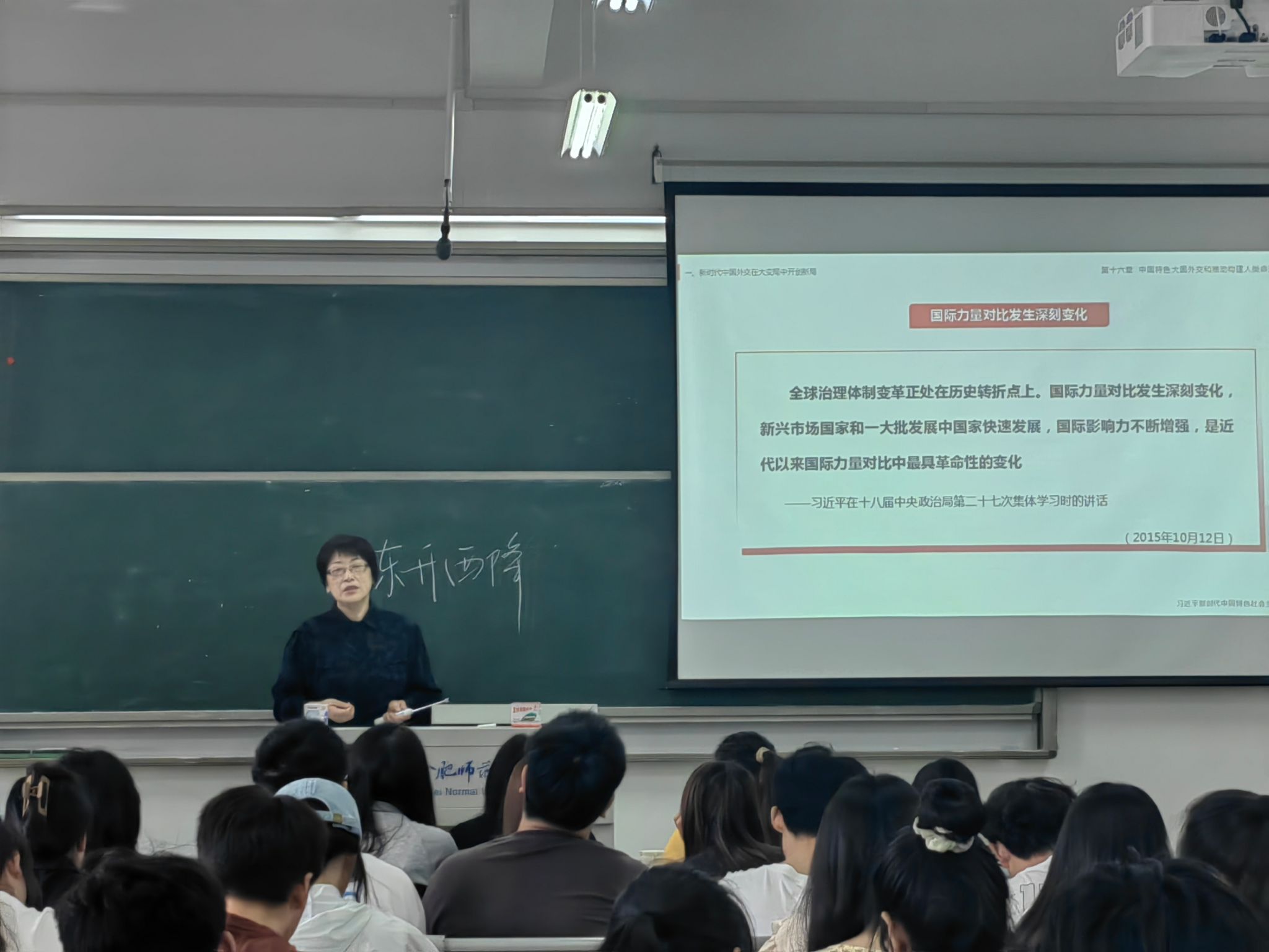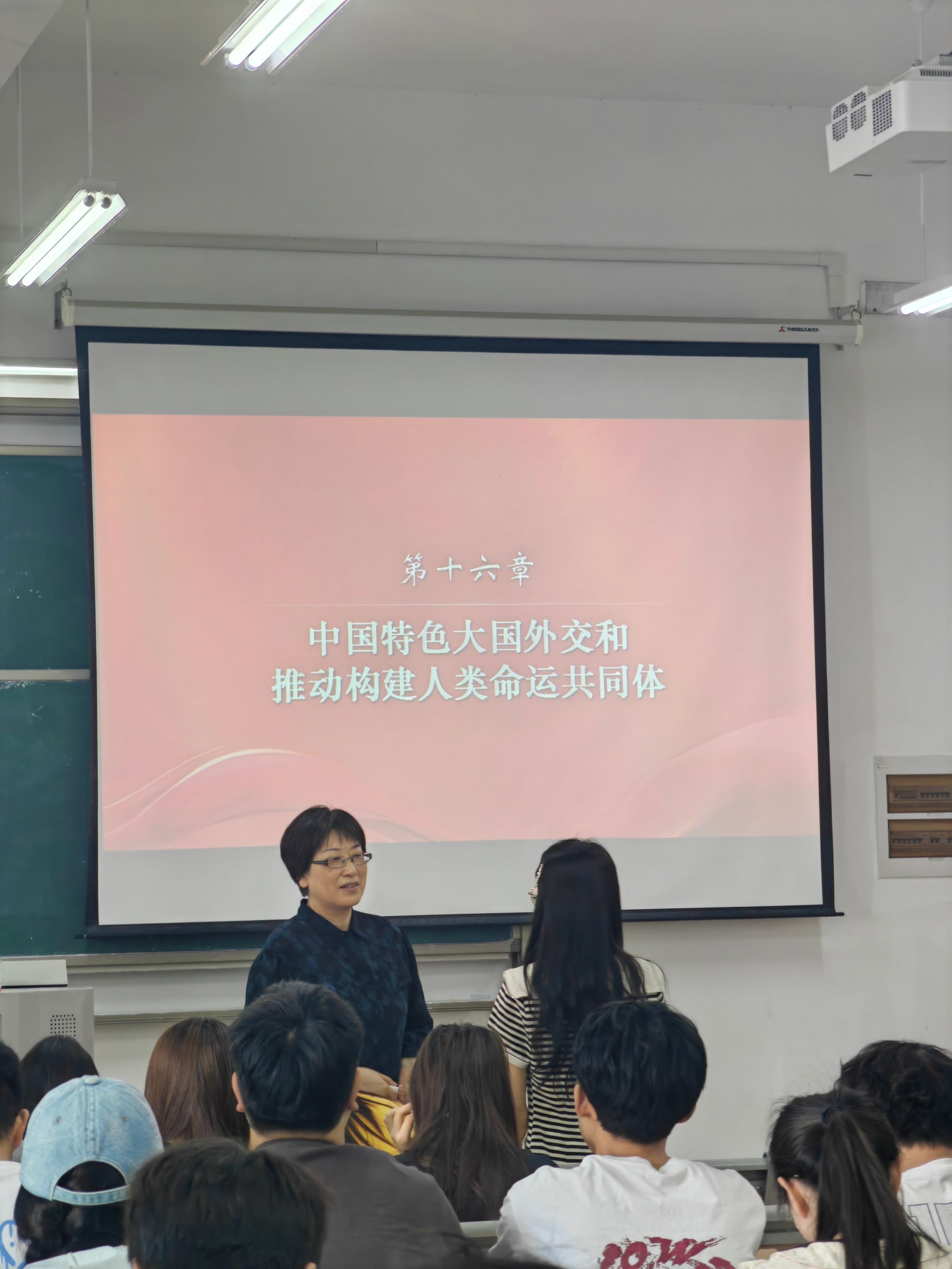 为深入贯彻习近平总书记对学校思政课建设的重要指示精神,深入了解学院思想政治理论课教学情况,5月23日上午,院党委副书记、院长方东玲在滨湖校区博学楼305教室为本科生讲授《习近平新时代中国特色社会主义思想概论》课程,主题为“中国特色大国外交和推动构建人类命运共同体”。2022级汉语言文学(师范)等专业约100名同学认真听取了授课。