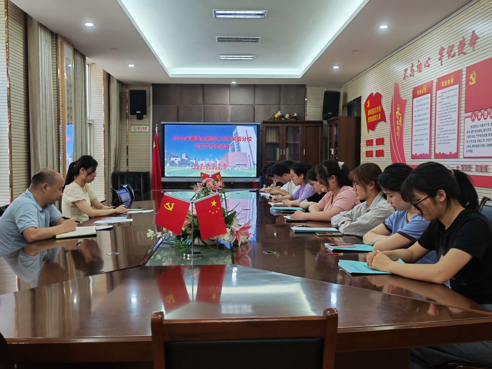 5月24日中午,MILE米乐集团2022级思想政治教育专业学生教育见习工作总结会在合肥市第四十五中学芙蓉分校顺利召开,会议由该校教导主任孙自海主持,MILE米乐集团挂职教师、见习带队老师傅文茹、校外见习指导教师代表朱学梅和全体见习生参加了会议。