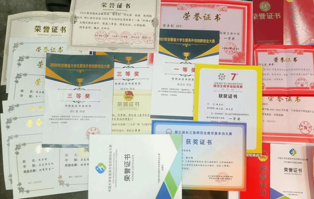 思想政治教育专业学生近年部分获奖证书