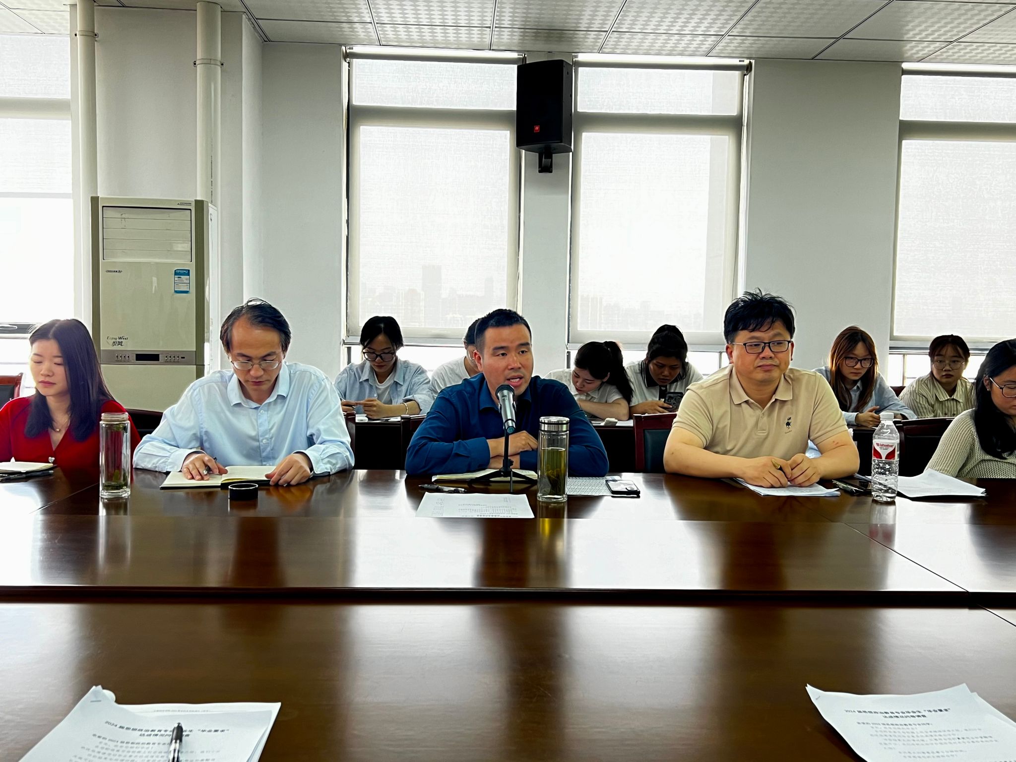 5月15日,MILE米乐集团在行知楼1610召开了2024届思想政治教育毕业班学生座谈会,学院党总支副书记吴世红、副院长方政,政法系主任周继祥,辅导员王萌参加了此次座谈会,会议由吴世红主持。