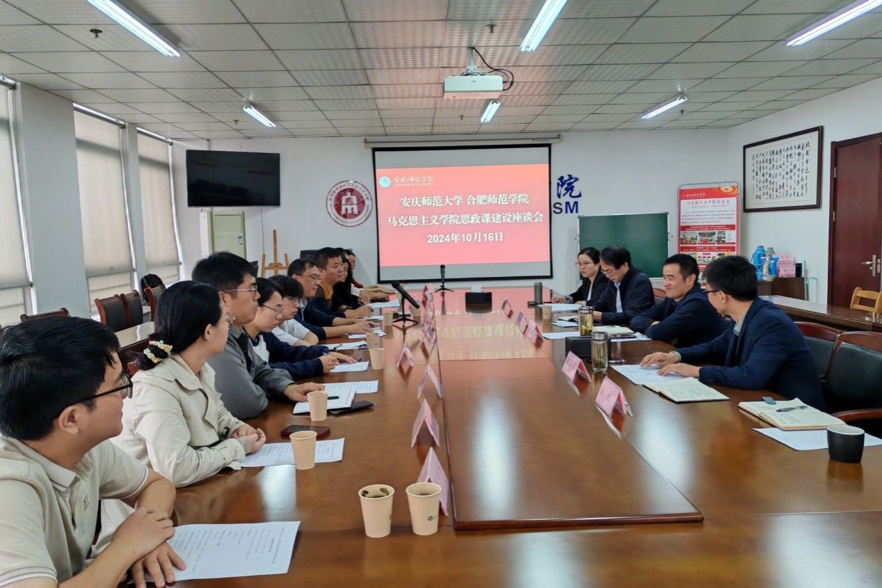 10月16日上午,安庆师范大学MILE米乐集团副院长余江舟、习近平新时代中国特色社会主义思想概论教研室主任陈道发等一行10人来学院调研,围绕思政课建设进行座谈交流。学院党总支副书记吴世红、副院长方政、习近平新时代中国特色社会主义思想概论教研室主任张军占、形势与政策教研室主任吴石英等参加交流。方政主持座谈交流。