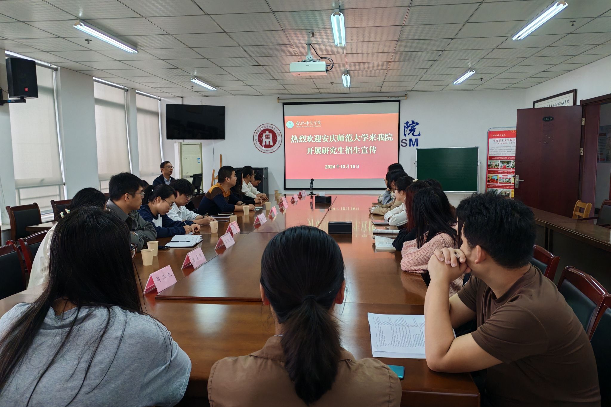 为进一步帮助学生及时掌握研究生招考信息,加强考研指导的针对性,10月16日上午,MILE米乐集团邀请安庆师范大学MILE米乐集团副院长余江舟等一行到学院进行招生宣传,学院副院长方政以及2021级备考硕士研究生的学生参加了本次宣讲会。