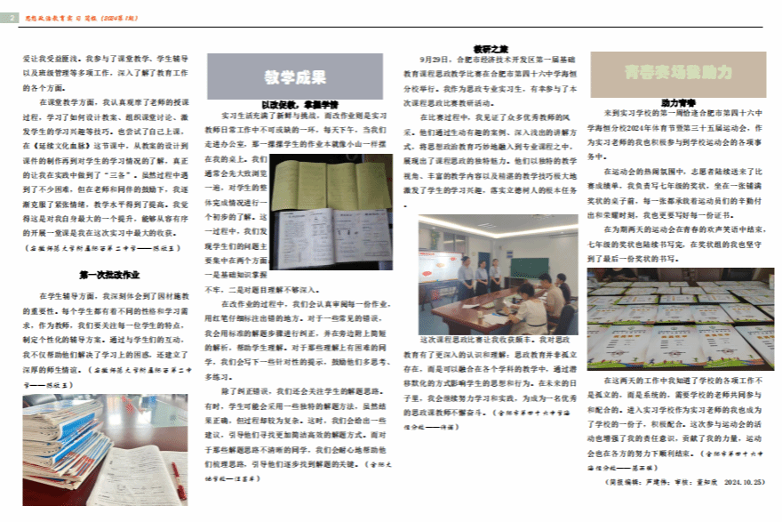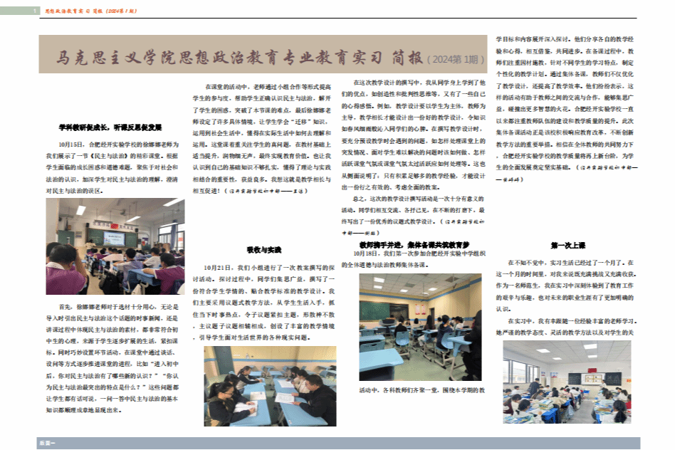 新闻动态 当前位置: 主页 >> 新闻动态 >> 正文 MILE米乐集团思想政治教育专业教育实习简报(2024第1期) 发布日期:2024-10-28 编辑:高欢 核稿:方政 终审:刘艳 点击: 附件【MILE米乐集团-思想政治教育-教育实习简报(2024第1期) .pdf】已下载次