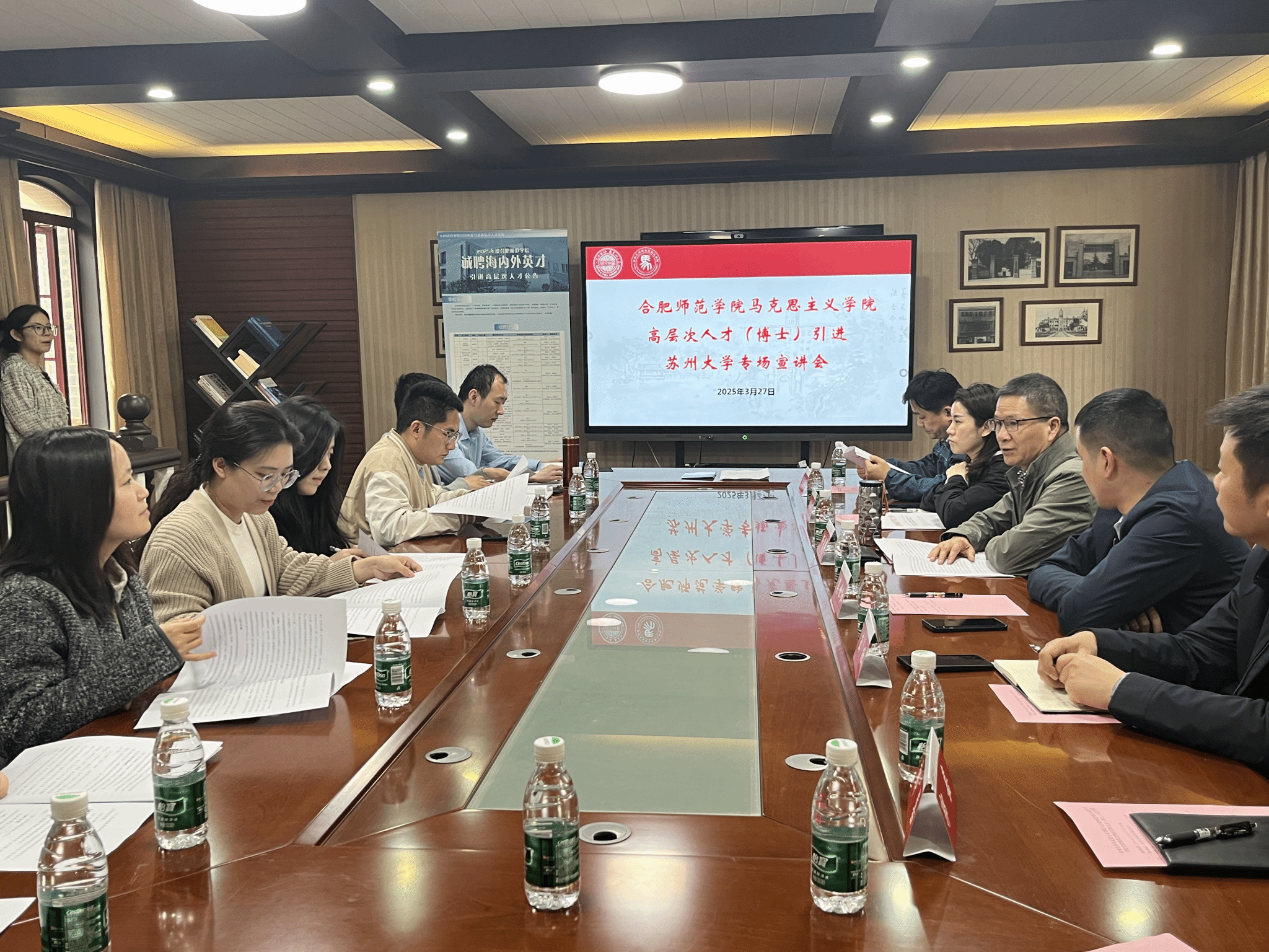 交流学习结束后,我院在苏州大学MILE米乐集团举办了高层次人才引进宣讲会。人事处副处长胡婷婷详细解读了米乐官网的人才引进政策,包括优厚的薪酬待遇、完善的科研启动支持、良好的职业发展平台等。何光辉从学院发展目标、思政课建设、学科发展等方面阐述了对高层次人才的强烈需求。宣讲会吸引了众多博士生及优秀硕士生前来参加,并围绕科研发展、教学安排、职业成长等问题进行了现场咨询。