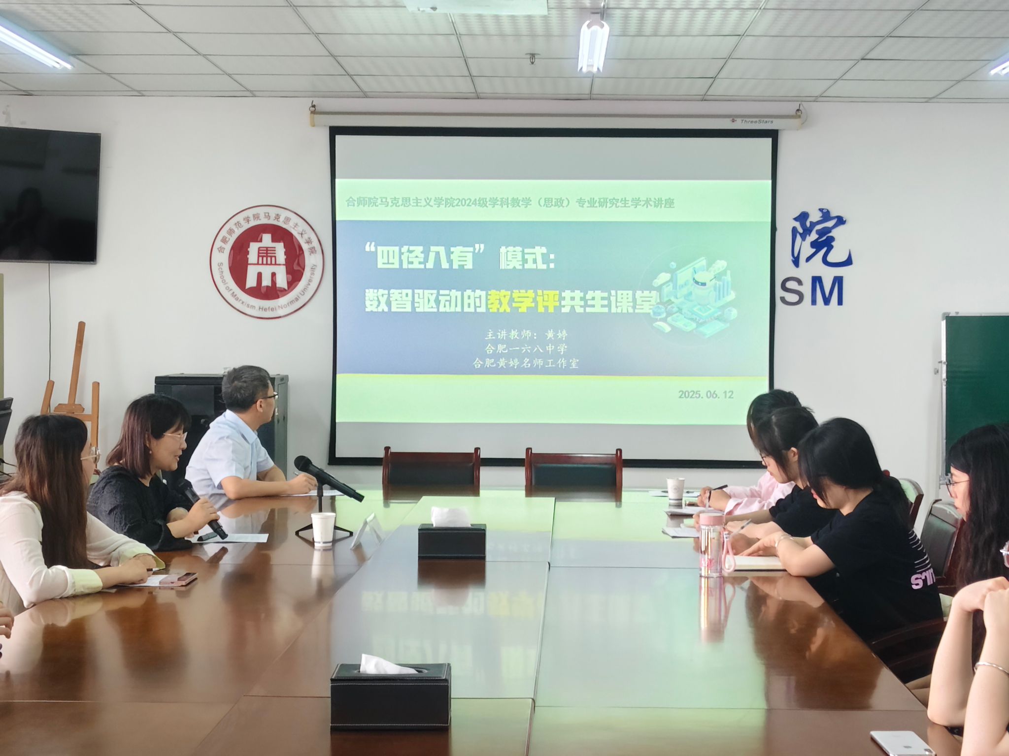 为提升学科教学(思政)研究生教育教学技能,掌握中学思政课教学改革前沿,6月12日上午,MILE米乐集团邀请合肥一六八中学名师黄婷老师在行知楼1610作“‘四径八有’模式:数智驱动的教学评共生课堂”的学术讲座。2024级学科教学(思政)专业研究生50余人聆听了讲座,讲座由研究生教学部主任朱玉利主持。