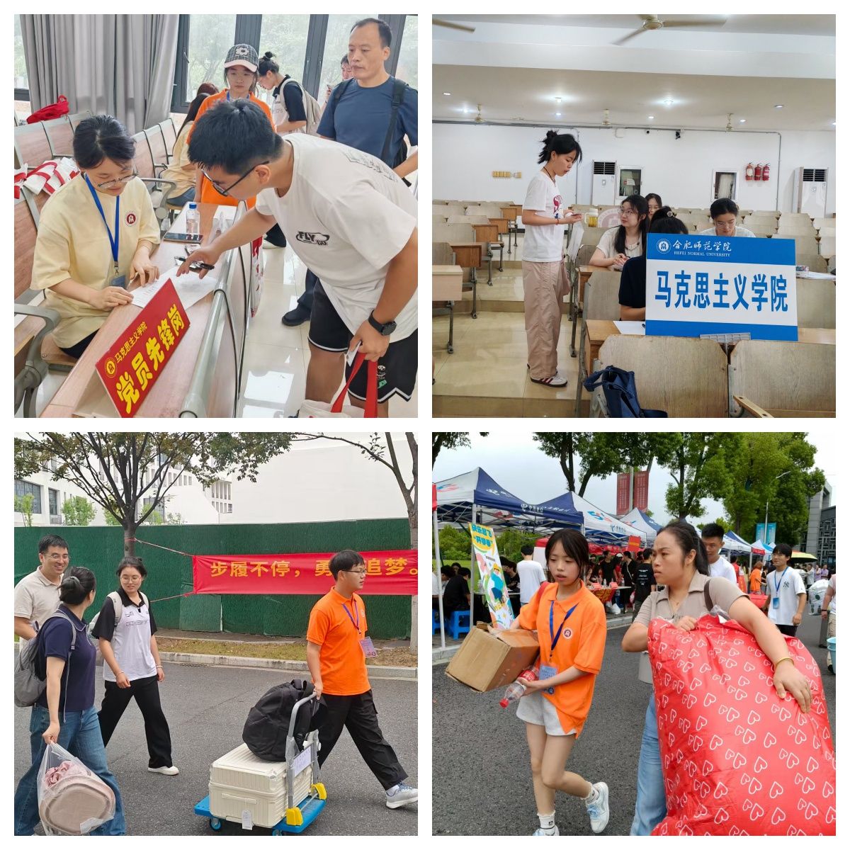迎新过程中,学院党政领导班子,辅导员老师及教师代表一声声关切的问候,悄然拉近了心与心的距离。老师们先后来到展台指导迎新工作,与新生亲切交流,随后到宿舍询问新生适应情况,进一步了解新生住宿环境,倾听新生意见和建议。同时,老师们还结合马克思主义学科特点,为新生分享专业学习方法与未来发展规划建议,鼓励大家尽快调整状态,以积极的心态投入大学生活,在马院大家庭中收获成长与进步。