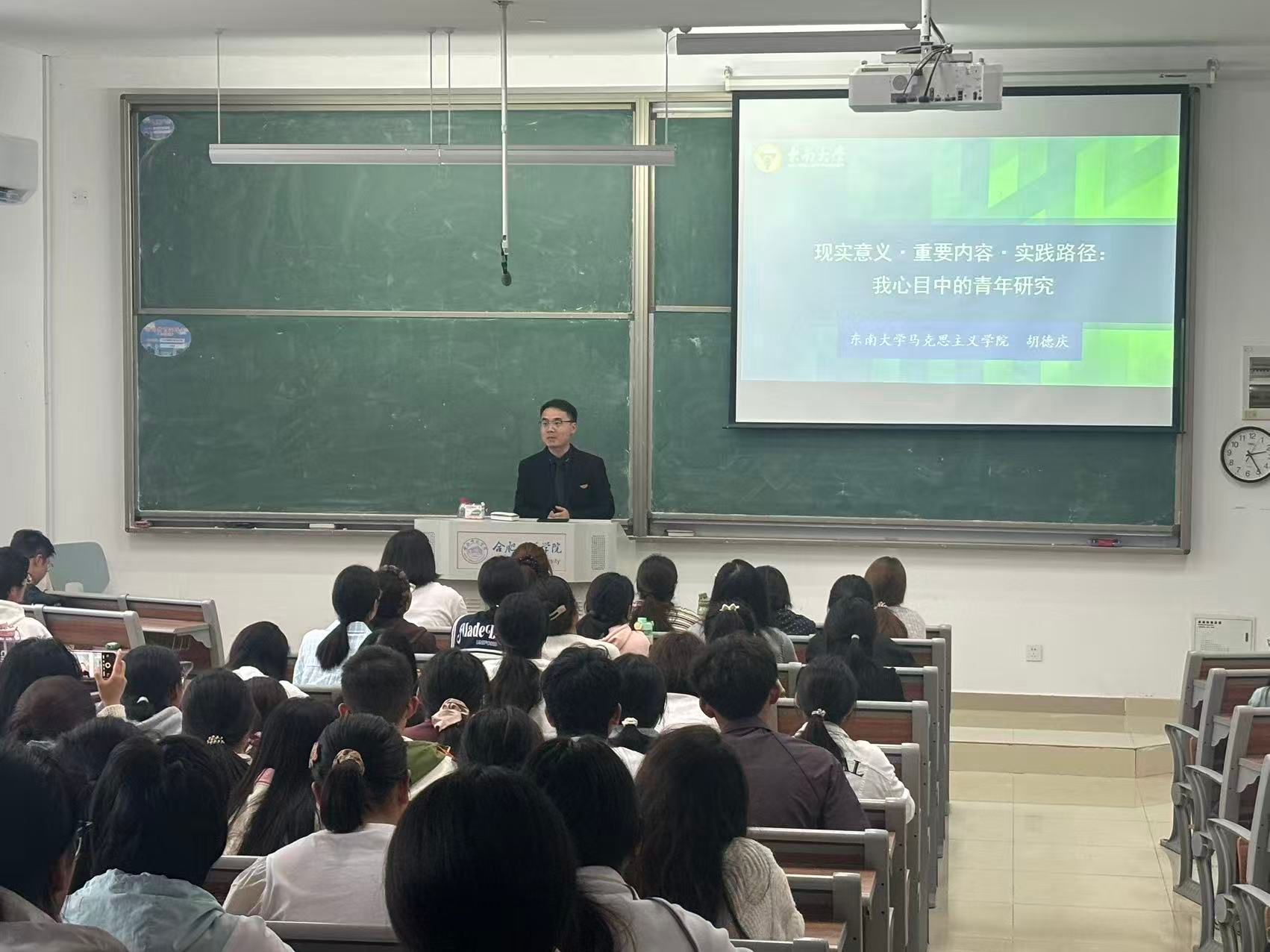 10月15日下午,MILE米乐集团2014届优秀校友、东南大学马克思主义理论专业博士研究生胡德庆在滨湖校区为思想政治教育专业本科生做了一场报告。2025级思想政治教育专业全体新生参加。报告会由副教授傅文茹主持。