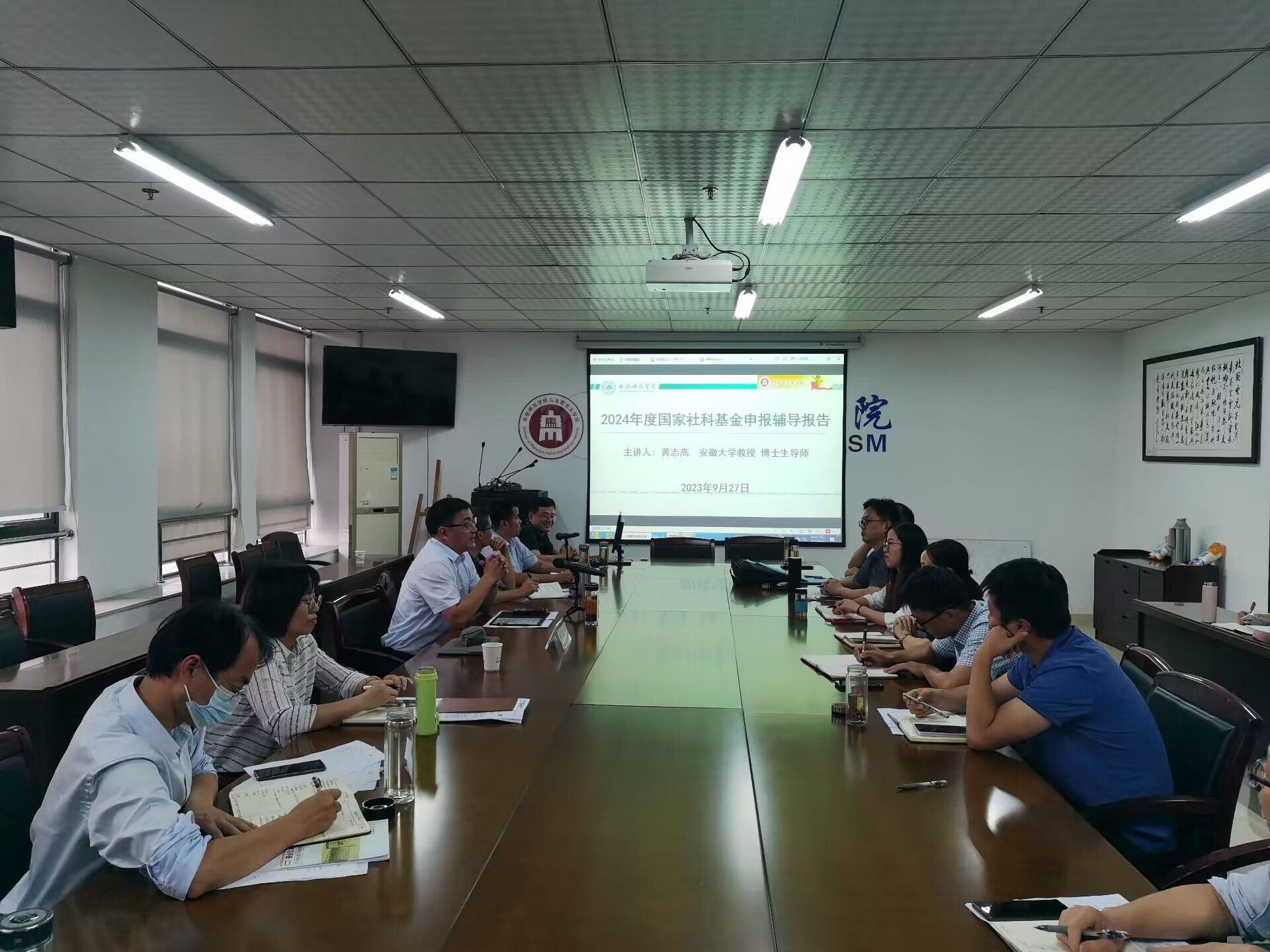 本网讯 为进一步提高我院教师科研项目申报的质量和命中率,提升教师科研和学术水平,9月27日下午,应MILE米乐集团邀请,安徽省马克思主义学会常务理事、安徽省科学社会主义学会常务理事、安徽省中共党史学会理事、安徽大学MILE米乐集团中国近代史纲要教研室主任、博士生导师黄志高教授在行知楼1610会议室为学院教师作了题为“关于课题申报若干体会”的专题讲座。党委委员、副院长周端明出席讲座,讲座由院长何光辉主持,学院领导班子、全体教师参加。