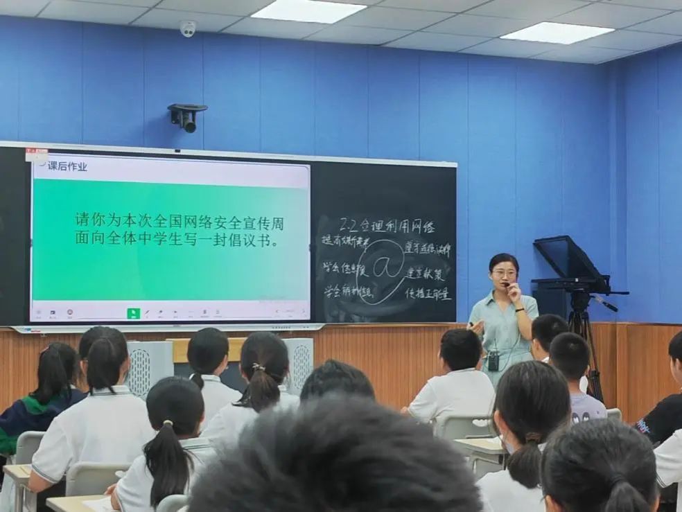 合肥市第四十五中学芙蓉分校(南区)徐文林、徐倩、高玲芝三位教师依次就七、八、九年级《道德与法治》课中的《少年有梦》《合理使用网络》《生活在新型民主国家》进行了课堂教学展示。三位教师紧密结合《义务教育道德与法治课程标准(2022年版)》和教材内容,精心设计教学活动,引导学生从小心怀至诚报国梦想,学会科学合理使用网络,正确认识新型民主国家的特色和优势。