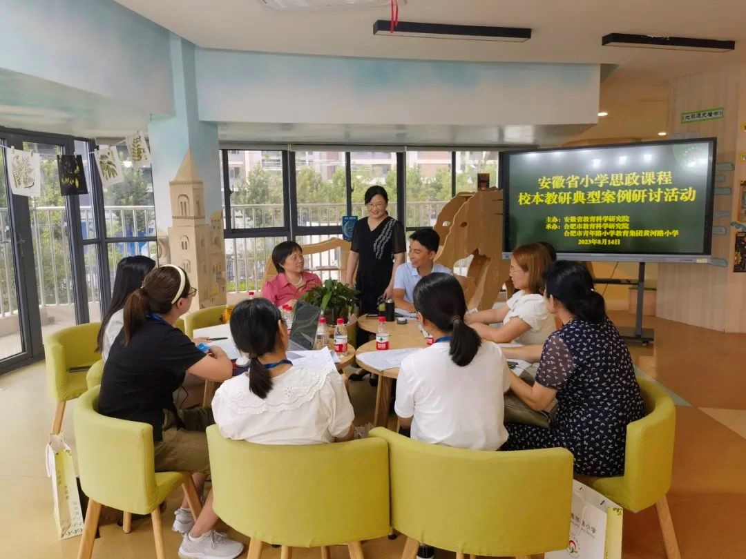 本网讯 2023年8月14日—15日,安徽省教育科学研究院主办的安徽省小学思政课程校本教研典型案例研讨活动在合肥市青年路小学教育集团黄河路小学举行。安徽省教育科学研究院小学道德与法治教研员季文华、合肥市教育科学研究院小学道德与法治教研员徐文墙、安徽师范大学教育科学学院教授、博士生导师、安徽师范大学附属小学校长辛治洋、我院教师傅文茹、吴石英和项目组领衔专家及11个校本教研典型案例入围学校的主要实施代表参与研讨。