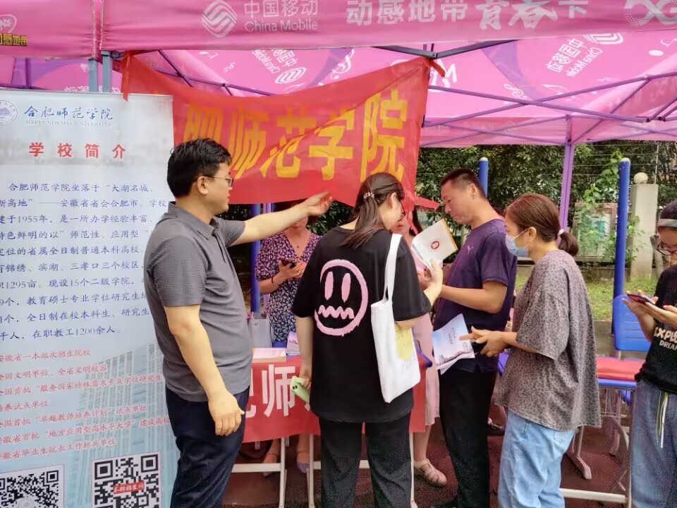 在合肥八中教育集团肥西中学,由我院学生组成的毕业生重回母校开展招生宣传工作,用自己学习生活经历生动展示了MILE米乐集团人才培养举措与质量,并引来大量考生驻足咨询。