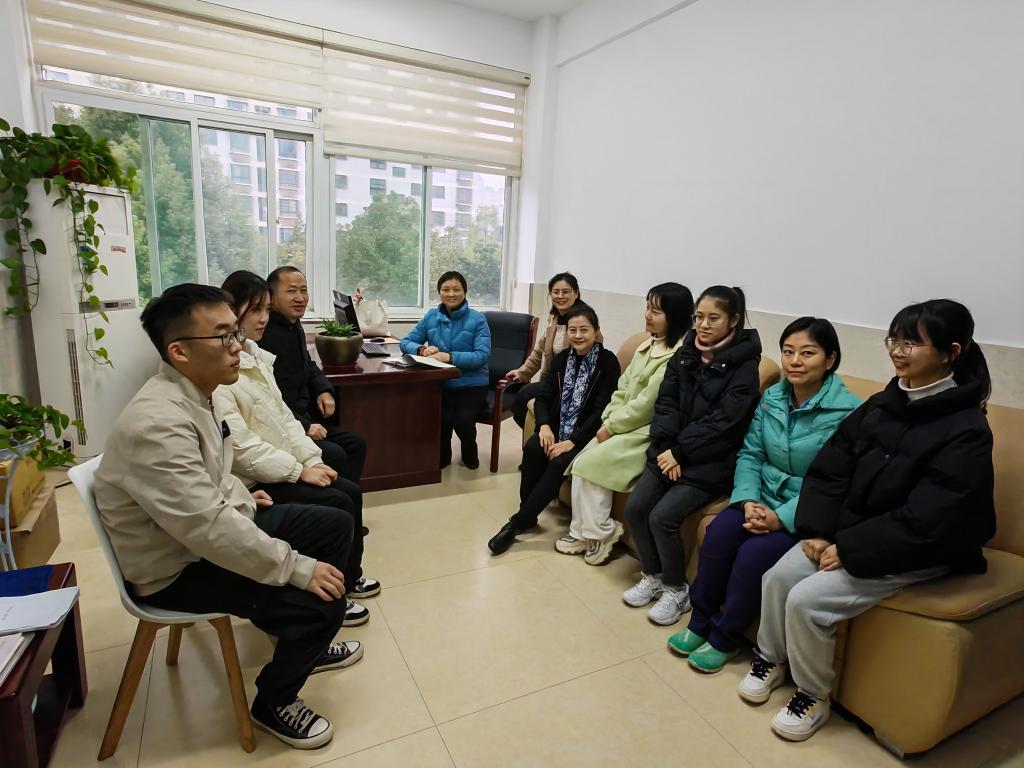本网讯12月16日下午,我院领导赴合肥市第六十八中学看望挂职教师和实习生,学院党总支书记吕田力、实践教学部主任魏兵副教授、研究生教学部副主任和校外实习指导老师陈露一行走进我院挂职教师傅文茹办公室,亲切地与傅老师和实习生们召开座谈会,让傅老师和五位实习生(2019级思想政治教育班陈玉钊、方媛、李悦、周治影和周欣雨)感觉温暖满满。