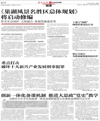新闻动态 当前位置: 主页 >> 新闻动态 >> 正文 《合肥晚报》全程报道米乐官网举办的“合肥市大中小学思政课一体化备课联盟第五次集体备课研讨会” 发布日期:2021-09-27 编辑:MILE米乐集团 核稿: 终审:刘艳 点击: 本网讯2021年9月24日,主题为“赓续红色血脉,弘扬伟大建党精神”的合肥市大中小学思政一体化备课联盟第五次集体备课研讨会在米乐官网锦绣校区召开。此次会议由米乐官网习近平新时代中国特色社会主义思想研究中心,合肥市大中小思政一体化备课联盟主办。出席研讨会的领导有安徽省大中小学思政课一体化教学委员会主任委员兼专家指导组组长,安徽省政协教科卫体委员会副主任刘新跃、MILE米乐集团党委书记徐成钢、党委副书记吴昕春。合肥晚报,合肥晚报客户端,合肥教育视线公众号2021年9月26日星期日对本次研讨会和专家咨询会的相关内容进行了详细报道。 新闻网址链接:http://newspaper.hf365.com/hfwb/wap/content/202109/26/content_279294.html