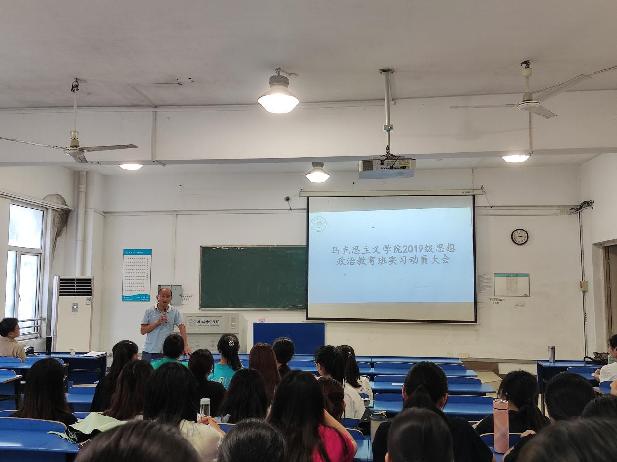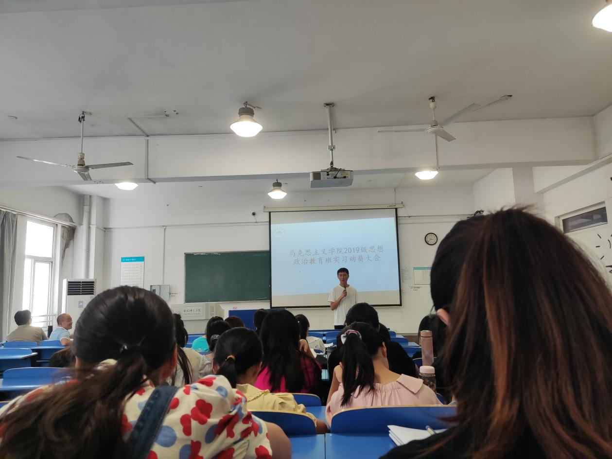 随后,2018级思想政治教育班张玉婷同学向大家分享实习经验。她讲述了实习班级纪律管理与实习学科教学工作中需要注意的事项;同时强调了要虚心向实习指导老师请教,积极参加实习学校观摩听课等教研活动。最后,2019级思想政治教育班代表宣恒天同学,表达了一定会珍惜实习机会,牢记学院领导和老师的嘱咐,交一份满意的实习答卷。