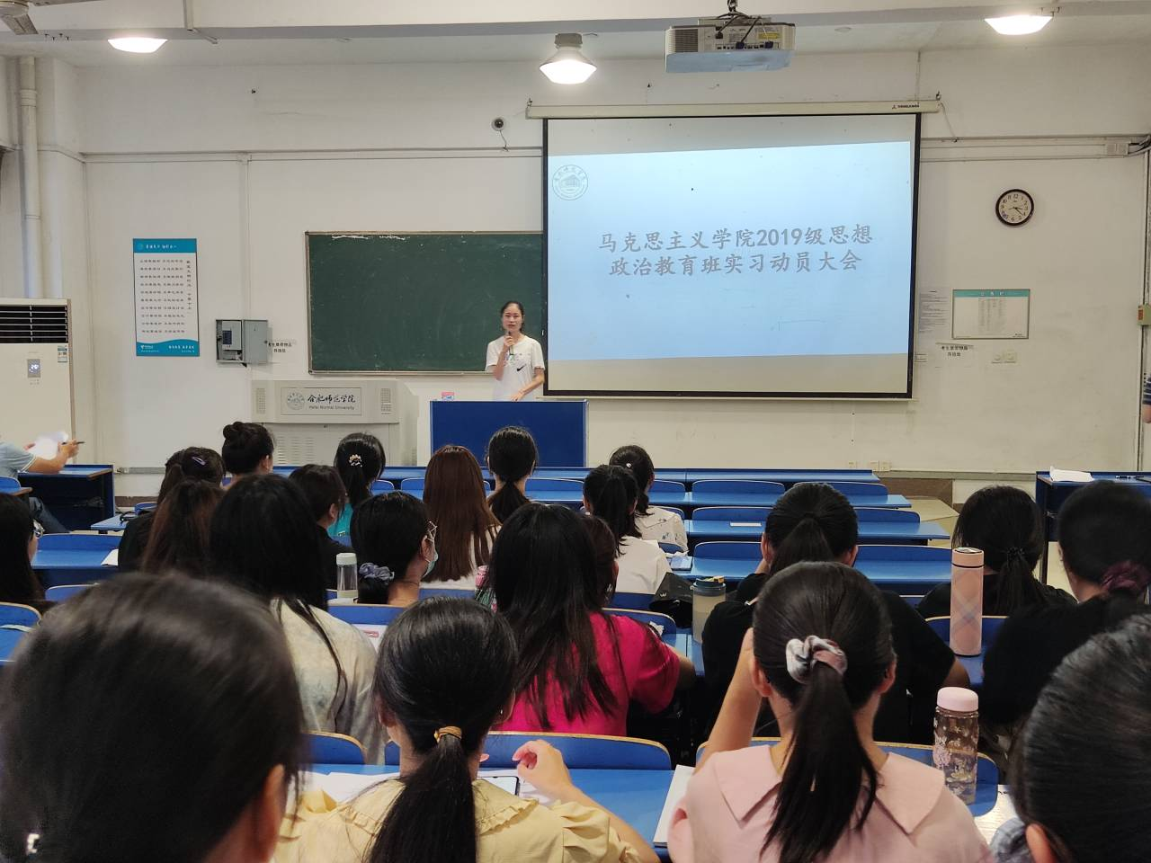 魏兵老师从实习时间安排、实习内容、实习手册填写、成绩评定以及疫情防控等方面进行了具体布置与安排。同时要求同学们服从安排、虚心求教,发扬吃苦耐劳精神,展示良好的合师学子形象。