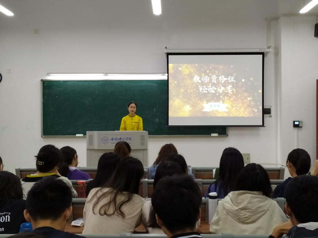 本网讯:为帮助同学们有效备考国家教师资格证考试,5月18日上午,MILE米乐集团在滨湖校区B109教室举行教师资格证考试经验交流会,2019级思想政治教育专业全体同学参加了经验交流会,交流会由朱玉利老师主持。