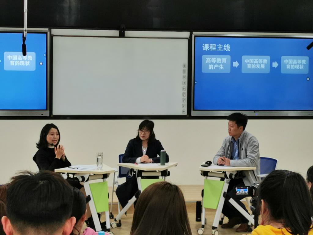 本场讲座以习近平总书记考查清华大学的视频作为开场,围绕“高等教育的产生——中国高等教育的发展——中国高等教育的现状”这一主线,三位老师用轻松愉悦的聊天式座谈,带领同学们从近代的蔡元培、张伯苓、梅贻琦,到新中国成立后中国高等教育的调整;从1977年重新恢复高考,到改革开放后211、985战略;从新时代中国高等教育的成就到“双一流”时代中国高等教育的未来走向。同学们跟随着老师们座谈的思路,一同走过了中国高等教育发展的百年历程。