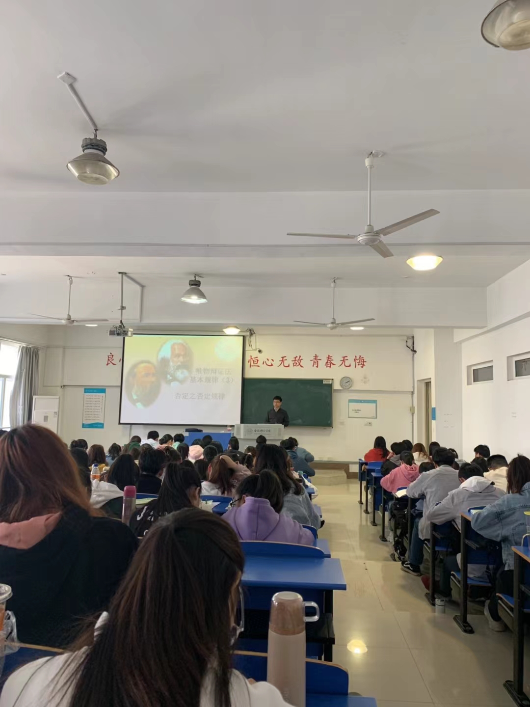 陈保同授课课程是《马克思主义基本原理概论》,授课内容是否定之否定规律。陈保同为此次观摩课做了精心准备,课前在教研室集体备课会上进行说课,认真听取同行的意见,精心设计了教学环节。在课堂上,陈老师通过设置问题导入课程,让学生带着问题听课。陈保同结合一系列案例讲解否定之否定规律原理,用通俗生动语言深入解读辩证法思想,极大地激发了学生学习兴趣。陈保同注重在潜移默化中强化对学生进行思想政治教育,引导学生树立学生正确的世界观、人生观和价值观,进一步落实思想政治理论课立德树人的根本任务。课后,同学们反映,陈保同老师教学深入浅出,理论联系实际,收获良多。