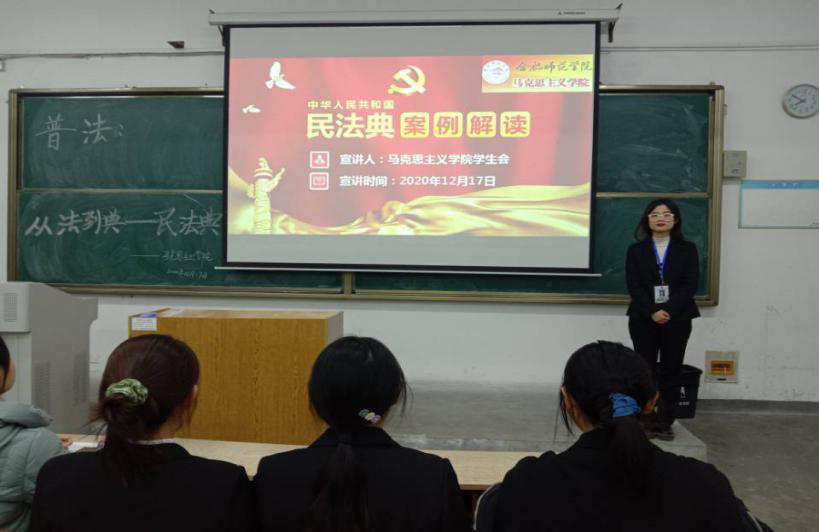 本网讯为积极宣传中华人民共和国首部民法典,12月17日MILE米乐集团学生会在MILE米乐集团锦绣校区博学楼111举办“普法:从法到典——民法典”宣讲活动。活动由马克思主义学生会主席罗心仪主持、学生会成员许林宣讲、本校部分同学参与。