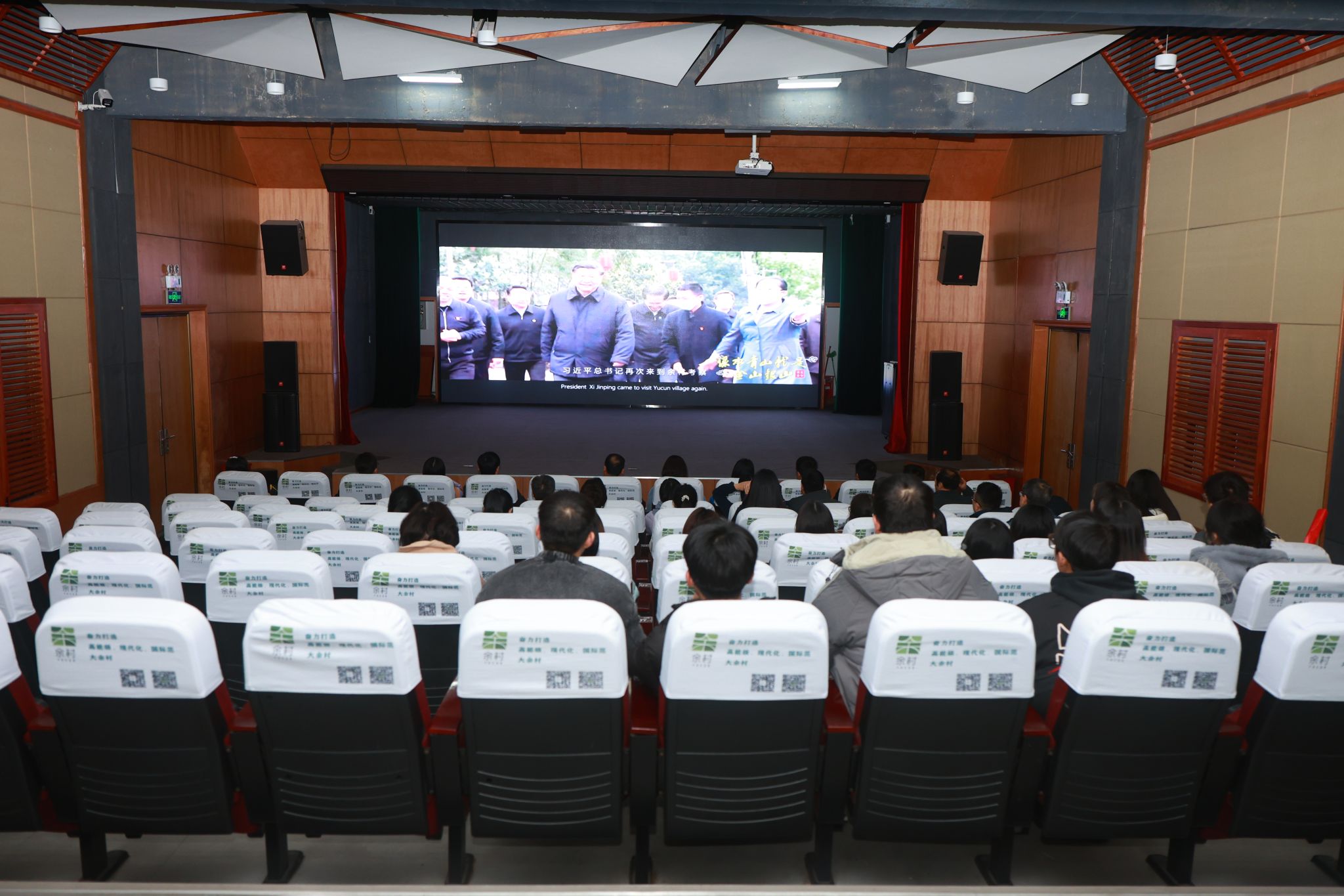 学院师生党员跟随讲解员参观了“两山”理论纪念碑、余村综合服务中心、余村印象等地,实地感受“绿水青山”发展之路。在余村文化礼堂,大家集中观看了“绿水青山就是金山银山”理念诞生专题纪录片,真切感受到在习近平总书记“两山”理论的指引下,新农村建设带来的巨大发展和变化和余村绿水青山焕发出的蓬勃生机。