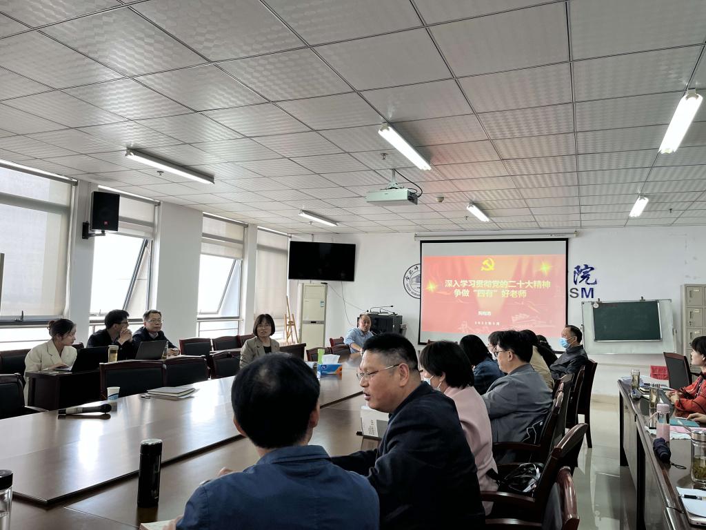 5月24日中午,陶有浩在教工第一支部和第二支部作了题为“深入学习贯彻党的二十大精神 争做‘四有’好老师”专题党课。他强调,全体教师要进一步学懂弄通做实习近平新时代中国特色社会主义思想,坚定不移以党的创新理论成果武装头脑、指导实践、推动工作。