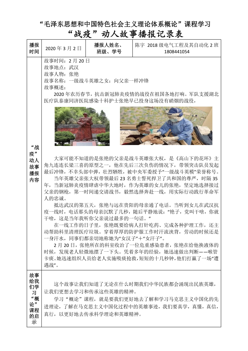 在疫情防控期间,我虽宅家没有出门,但是忙于网络教学和增加信息储备的学习,使我感觉紧张而充实。尽管现在我还有许多网络教学中的问题要逐步去解决,但是我一直努力让我的网络思政课有正能量,当学生反馈说“上《毛概》网课三个星期了,我开始更加喜欢注意国家政策动向,疫情期间真真切切让我感受到了祖国的强大。”“这样一个特殊的时期,老师上课很耐心,很负责,上课方式也是多种多样,特别是《“战疫”动人故事播报》活动,让我们更加生动地了解这次疫情中的动人故事。”“通过学习,我认识到大学生学习毛泽东思想和中国特色社会主义理论体系具有重要意义和极高的应用价值。”“通过了解疫情防控和学习《毛概》课程,我们应明确未来人生的奋斗目标,认真做好学习和生活中的每一件事,努力在为国家发展和民族复兴的奋斗中,创造自己的辉煌人生。”我内心感到十分温暖。为了学生的健康成长,我会更努力地上好思政课!