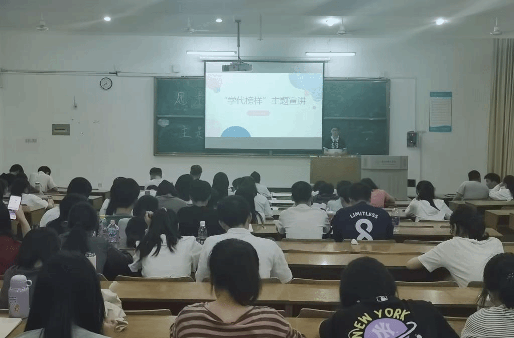 本网讯为充分发挥榜样的模范作用,提高同学们的学习积极性,形成浓厚的学习氛围,MILE米乐集团于4月21日在博约楼208召开“学在榜样”主题宣讲活动。此次宣讲会由辅导员王萌主持,学院全体学生参与。
