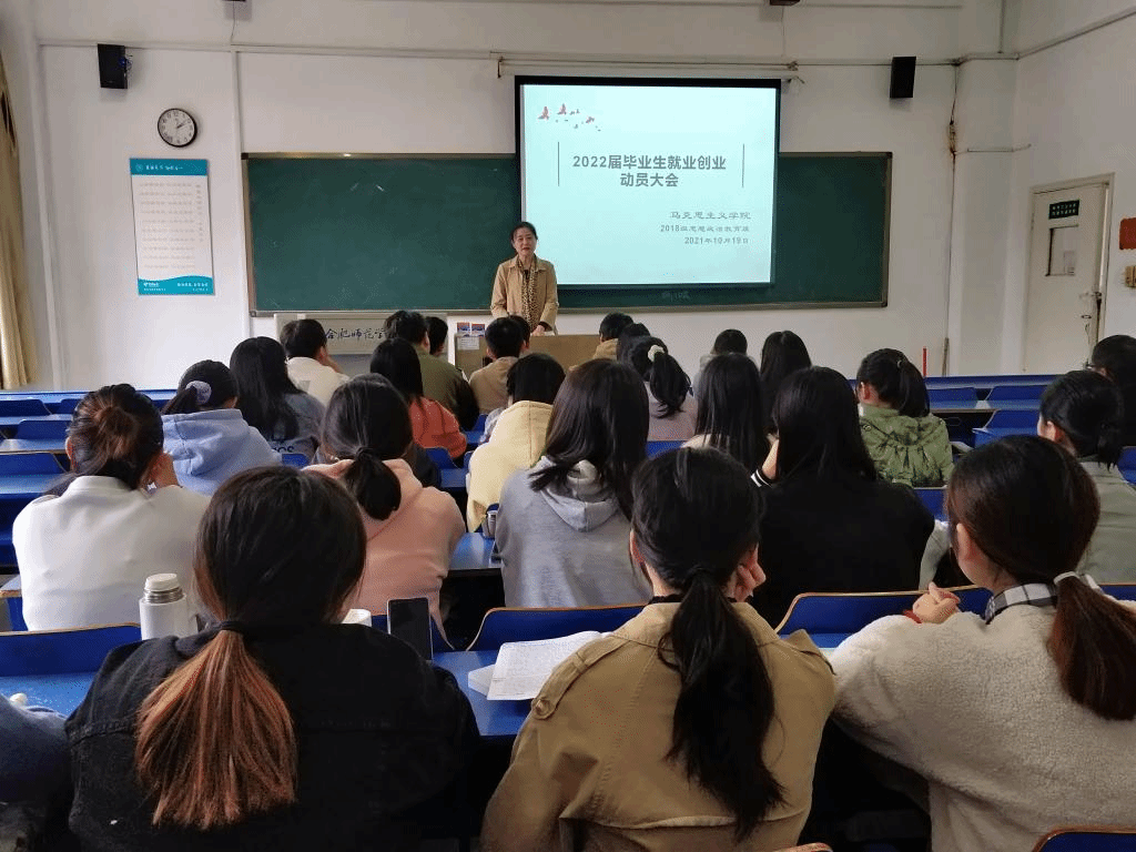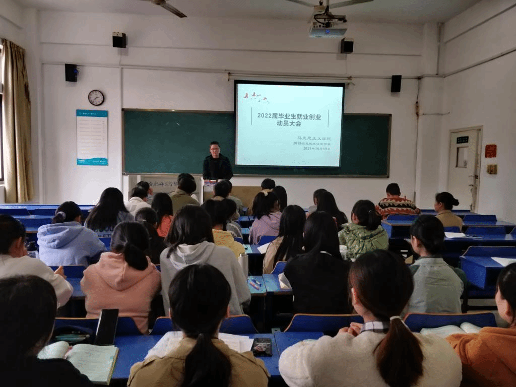 最后,王萌传达了学校毕业生就业创业工作专题会议精神,并对2022届毕业生校园招聘双选会、就业意向摸底等情况进行了介绍。同时带领全体2022届毕业生学习了习近平总书记给河北保定学院西部支教毕业生群体代表回信的内容,鼓励毕业生去西部和边疆地区发展,去祖国最需要的地方去贡献自己的一份力量。