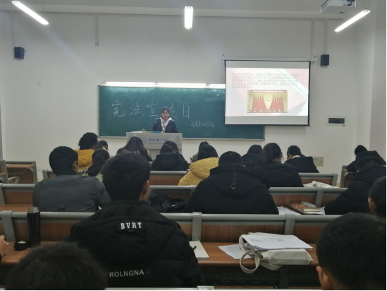 活动伊始,曹继允同学向大家介绍宪法日的由来以及我国宪法规定的国家制度,使同学们对我国宪法有了更加深刻的认识。紧接着,曹继允同学结合自己学习体会,以问答的方式让同学对有关公民与人民的区别、公民的基本权利、公民的基本义务的知识有了更加清清晰的理解。