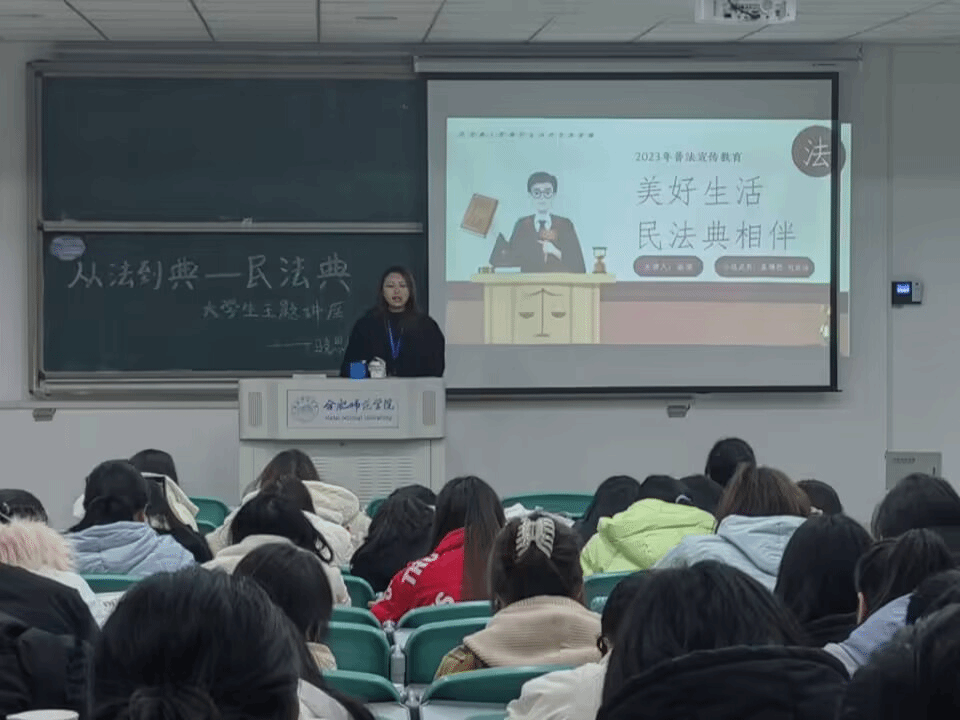 为深入学习贯彻习近平法治思想和习近平总书记关于加强民法典学习宣传的重要指示精神,提升大学生法治素养,12月7日,MILE米乐集团在滨湖校区博学楼A205开展“普法:从法到典—民法典”主题宣讲活动,2023级思想政治教育班全体同学参加。