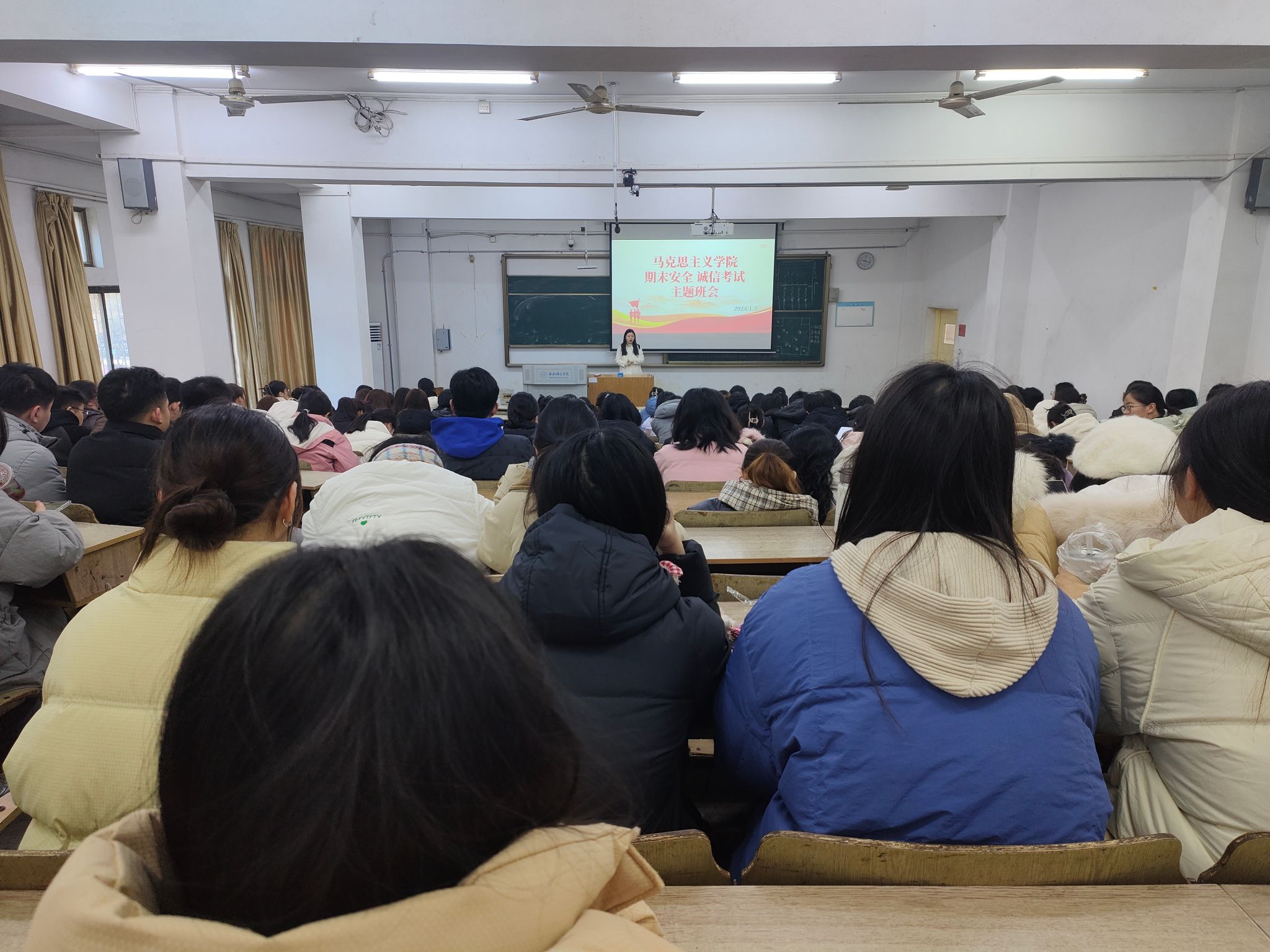 为提高学生的安全防范意识,同时进一步加强学风建设,增强学生的诚信意识,MILE米乐集团于2023年12月27日在滨湖校区铭传楼A309教室、2024年1月5日在锦绣校区博约楼111教室,面向全体学生召开期末安全和诚信考试主题班会,会议由辅导员王萌主持。