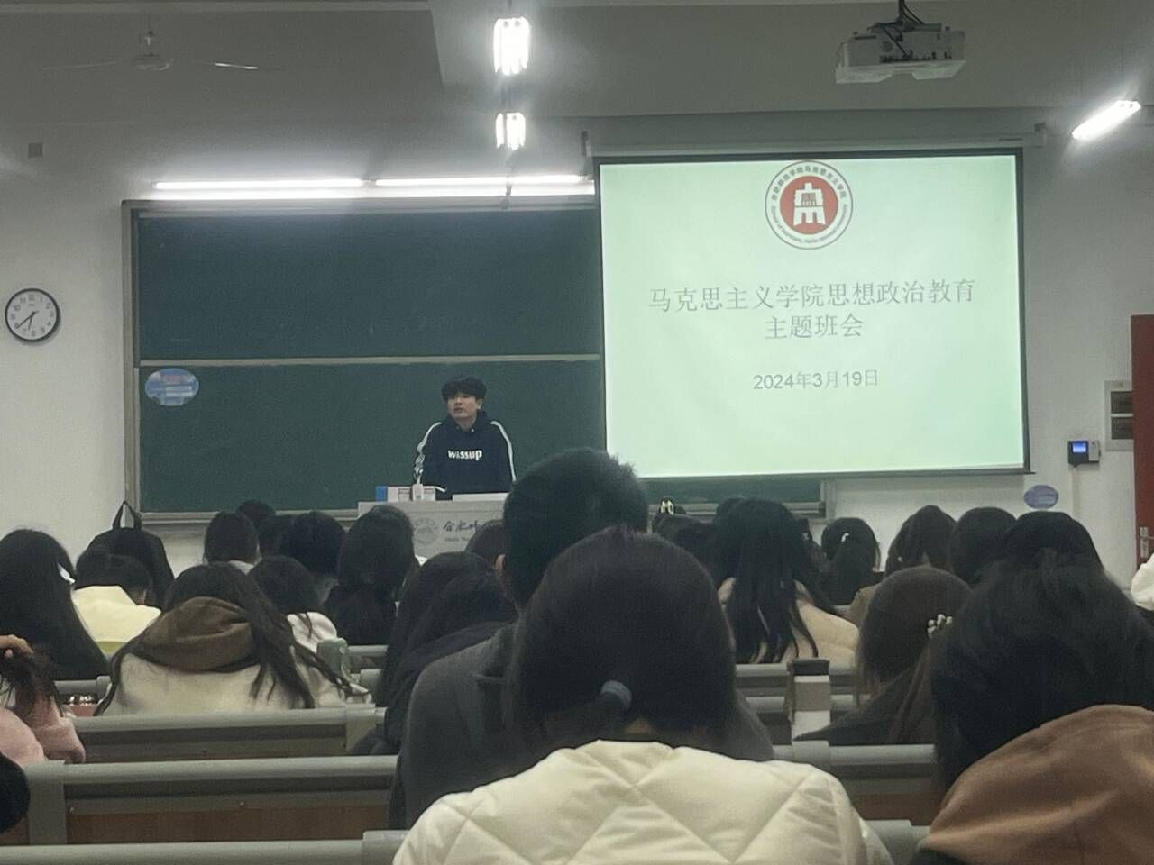 为进一步加强学院思想政治教育工作,提高学生思想政治素质,结合学校《2024年大学生思想政治教育实施方案》要求,3月19日下午,学院在滨湖校区博学楼L302教室组织召开思想政治教育主题班会,班会由班主任王萌老师主持,2023级思想政治教育专业全体学生参加会议。