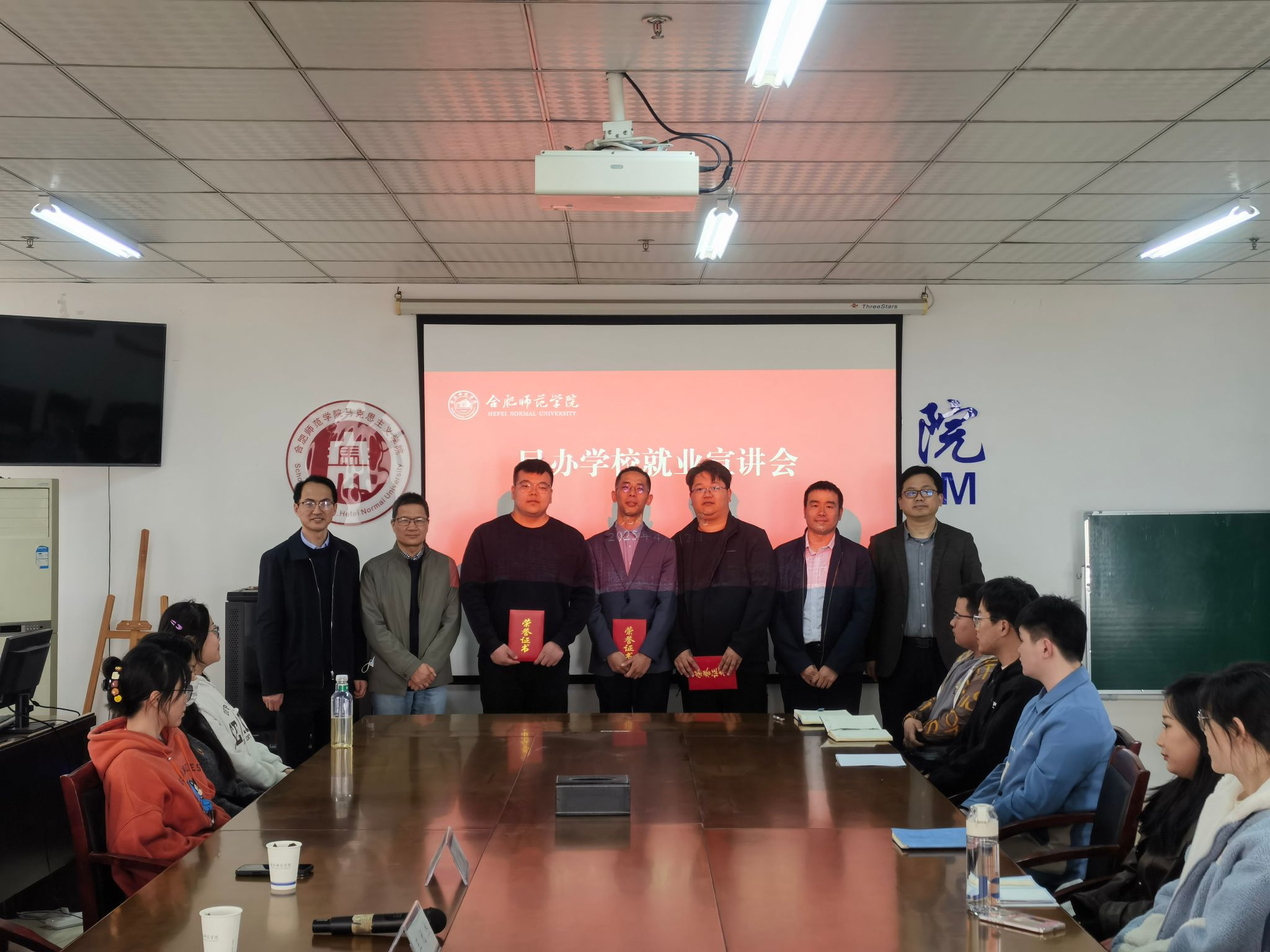 为拓宽思想政治教育专业师范生就业渠道,引导学生科学规划职业生涯,4月12日下午,学院邀请合肥东辰职业学校王元杰、浙江温州乐清知临中学马硕及合肥锦绣中学王雄等优秀校友返校开展民办学校就业专题宣讲会。学院党政领导班子成员、政法系主任、毕业班辅导员及2021级、2022级思政专业学生代表参加了此次活动。宣讲会由院长何光辉主持。