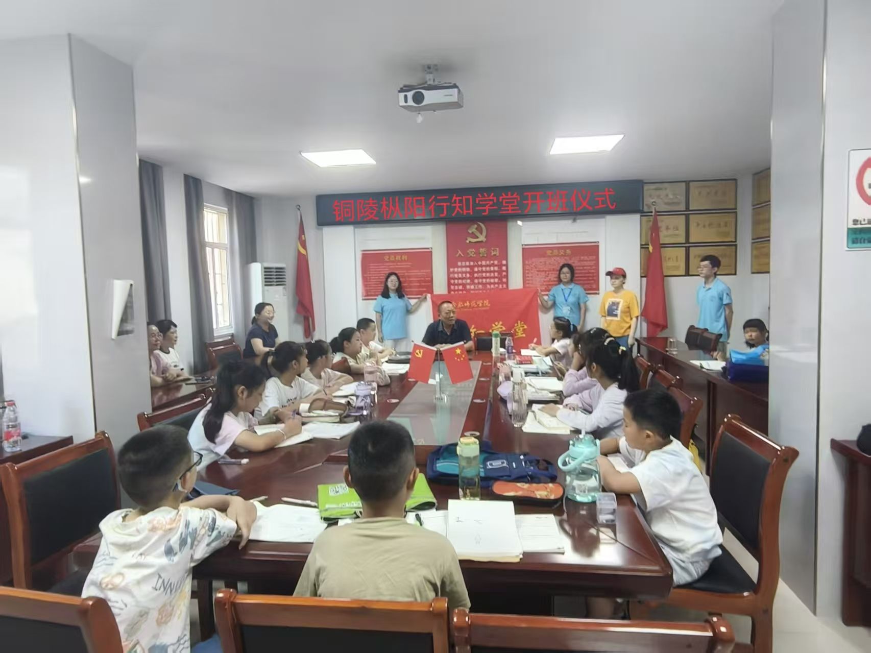 7月8日上午,MILE米乐集团枞阳行知学堂在铜陵市枞阳县老庄社区党支部顺利开班。铜陵市枞阳县老庄社区党支部书记方仙华,社区负责人褚倩,学堂全体“小先生”、小学员及其家长等30余人参加开班仪式。