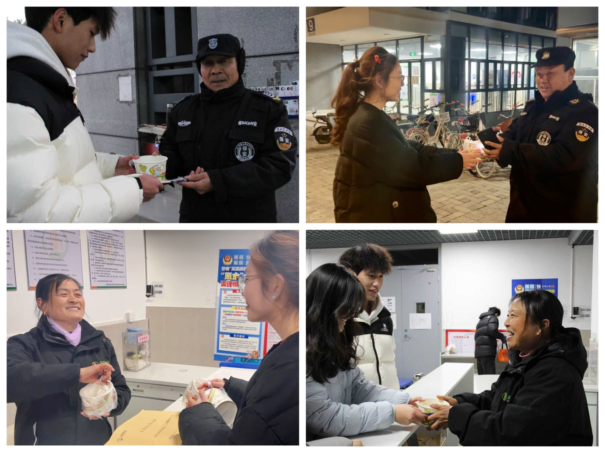 同学们自发组成爱心小队,将打包好的饺子送至宿管阿姨和校园保安值班室。一句问候、一份饺子,传递出浓浓的关怀与敬意,让校园守护者们倍感温暖。这一暖心举动充分展现了马院学子尊重劳动、感恩奉献的价值追求,彰显了新时代青年的责任与担当。