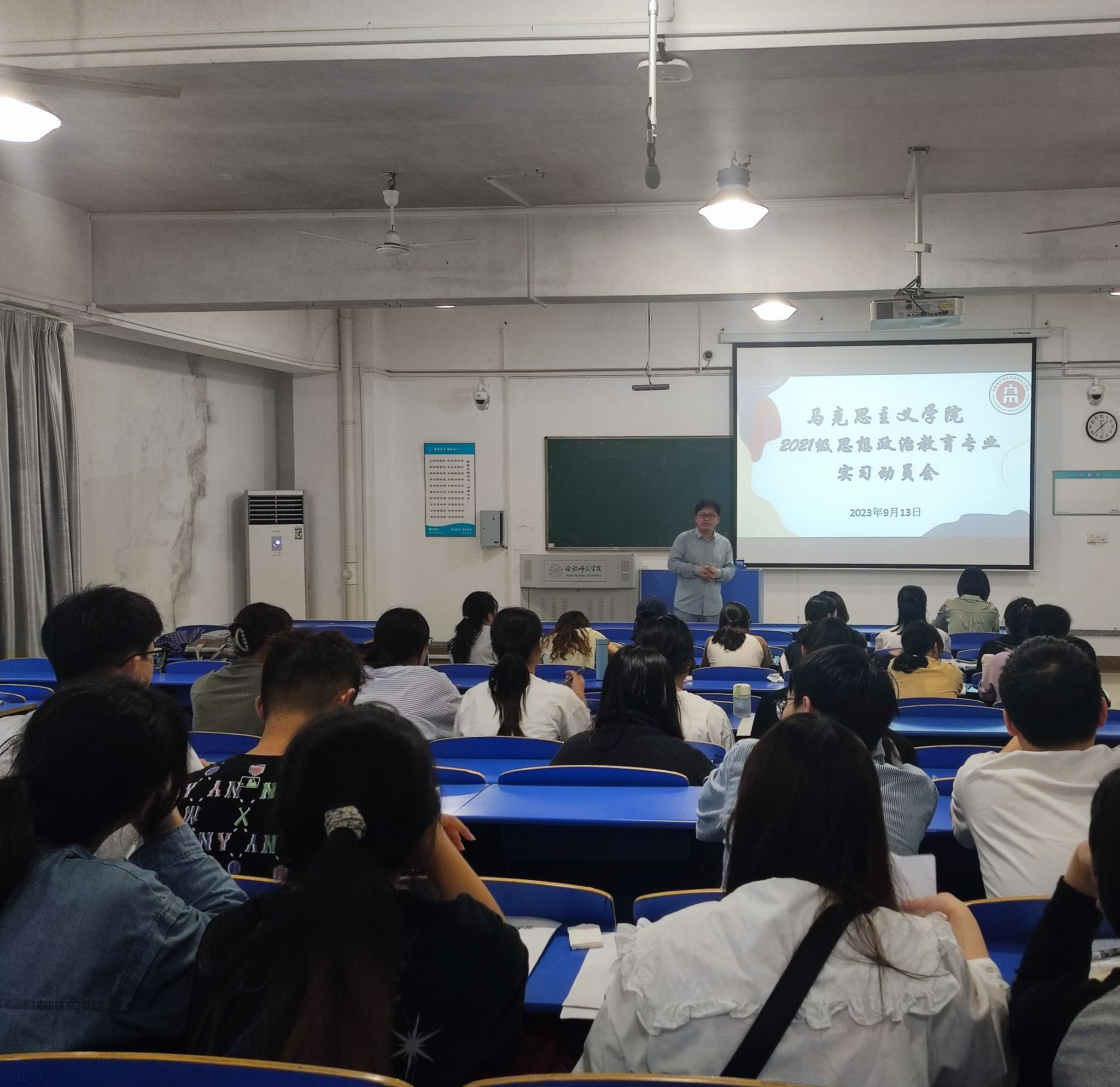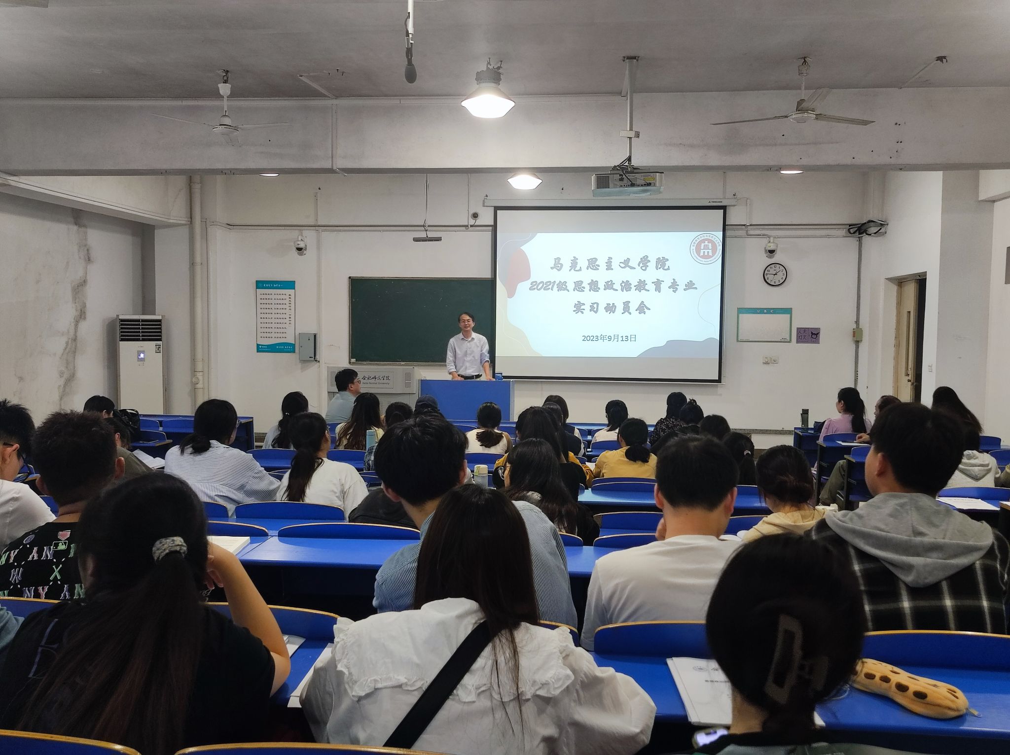 魏兵结合思想政治教育专业教育实习实施细则以及本次实习方案,向同学详细说明了本次教育实习具体安排、主要任务及注意事项。