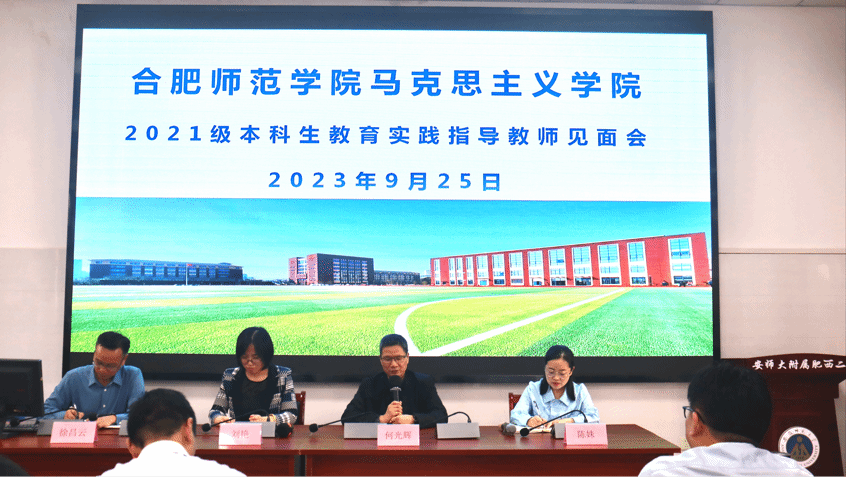 本网讯 为进一步深化与教育实践基地合作,提升师范专业人才培养质量,按照教育实习工作安排,9月25日上午,MILE米乐集团党总支书记刘艳、院长何光辉及校内指导教师一行送2021级思想政治教育专业学生赴安徽师范大学附属肥西县第二中学参加教育实习。