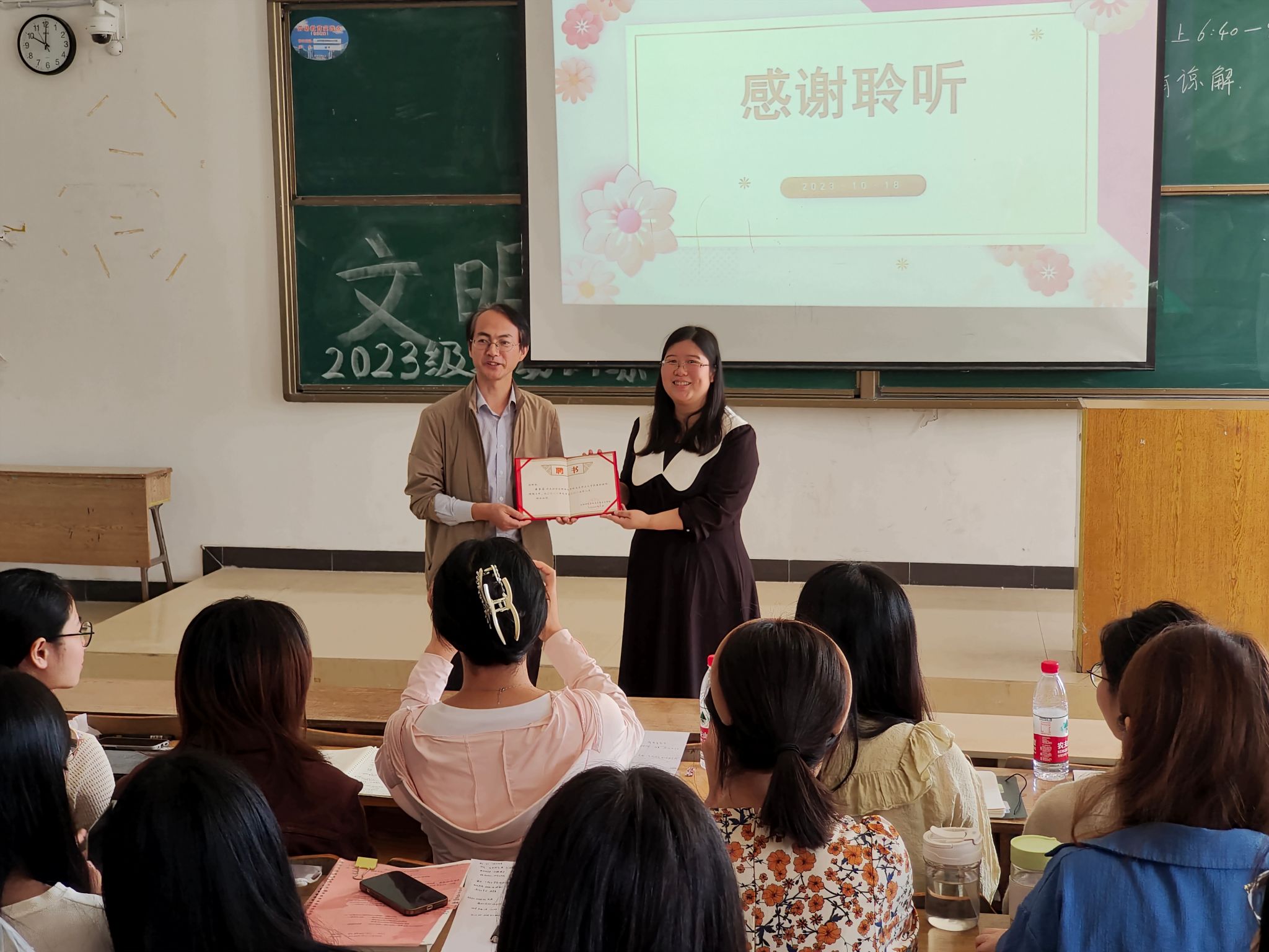 方政代表MILE米乐集团向秦芬芬颁发了校外兼职教师的聘书,并对秦芬芬支持母校思想政治教育专业人才培养表示感谢。他强调MILE米乐集团通过邀请基础教育优秀校友参与师范专业人才培养,进一步汇聚校内外优秀师资,打造“思责守正”育人平台,为师范生成长成才提供肥沃的黑土地,希望同学们能够认真学习领悟,提高自身的教育教学技能,今后真正成长为中学思政课骨干教师。