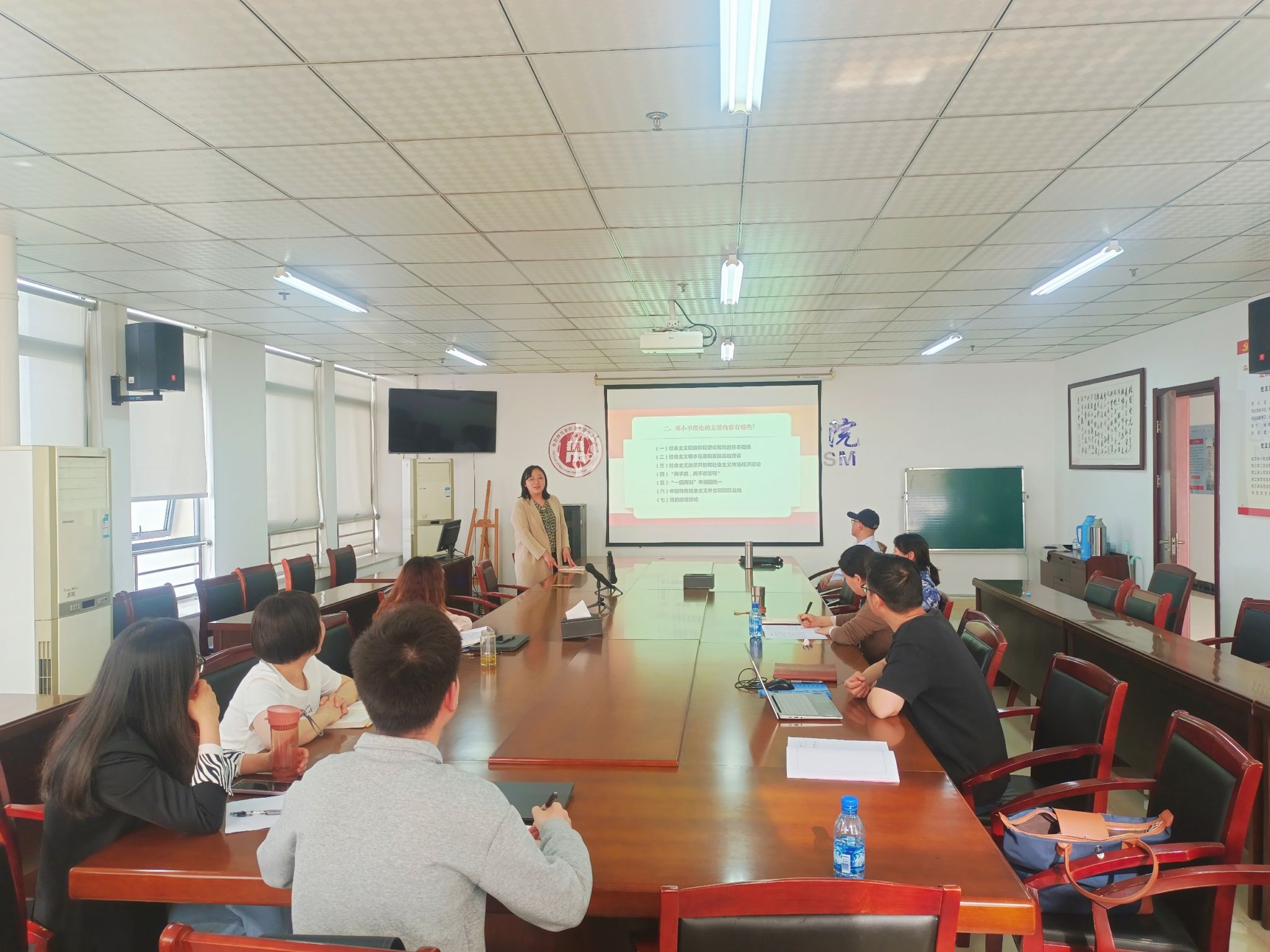 此次备课会以教学内容的创新优化为核心,由教研室主任俞小和主持。孙兆静作为主讲人,围绕第六章邓小平理论中“邓小平理论的主要内容”展开系统阐释。在备课展示过程中,孙兆静对邓小平理论各要点进行解读,同时紧扣时代脉搏,巧妙融入鲜活案例,将理论与实践紧密结合,把抽象的理论知识转化为学生易于理解的生动素材,帮助学生深刻领会邓小平理论的核心内涵及其在当代社会的价值。